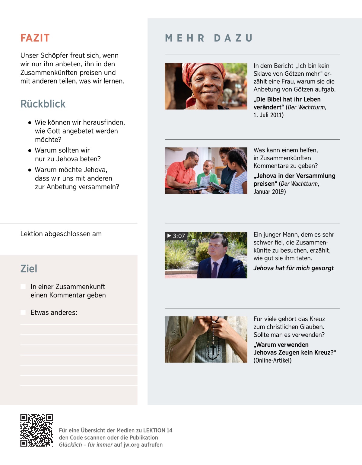 Unser Schöpfer freut sich, wenn wir nur ihn anbeten, ihn in den Zusammenkünften preisen und mit anderen teilen, was wir lernen.