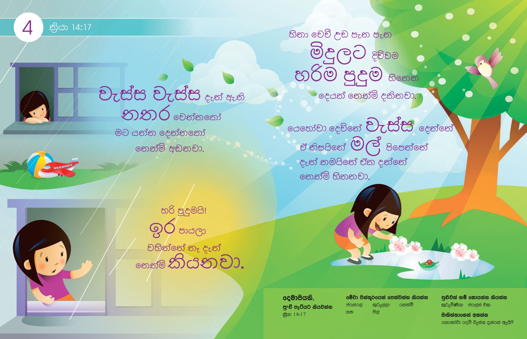 යෙහෝවා දෙවිනේ වැස්ස දෙන්නේ ඒ නිසයිනේ මල් පිපෙන්නේ දැන් තමයිනේ ඒක දන්නේ නෙත්මි හිතනවා.