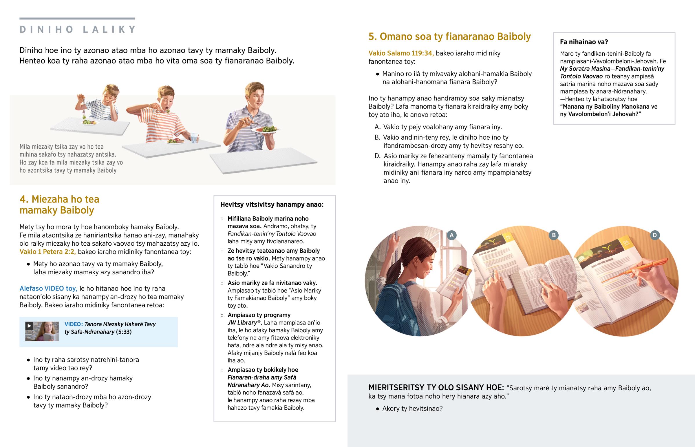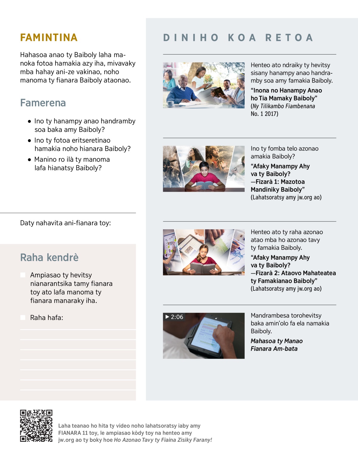 Diniho hoe ino ty azonao atao mba ho azonao tavy ty mamaky Baiboly. Henteo koa ty raha azonao atao mba ho vita oma soa ty fianaranao Baiboly.