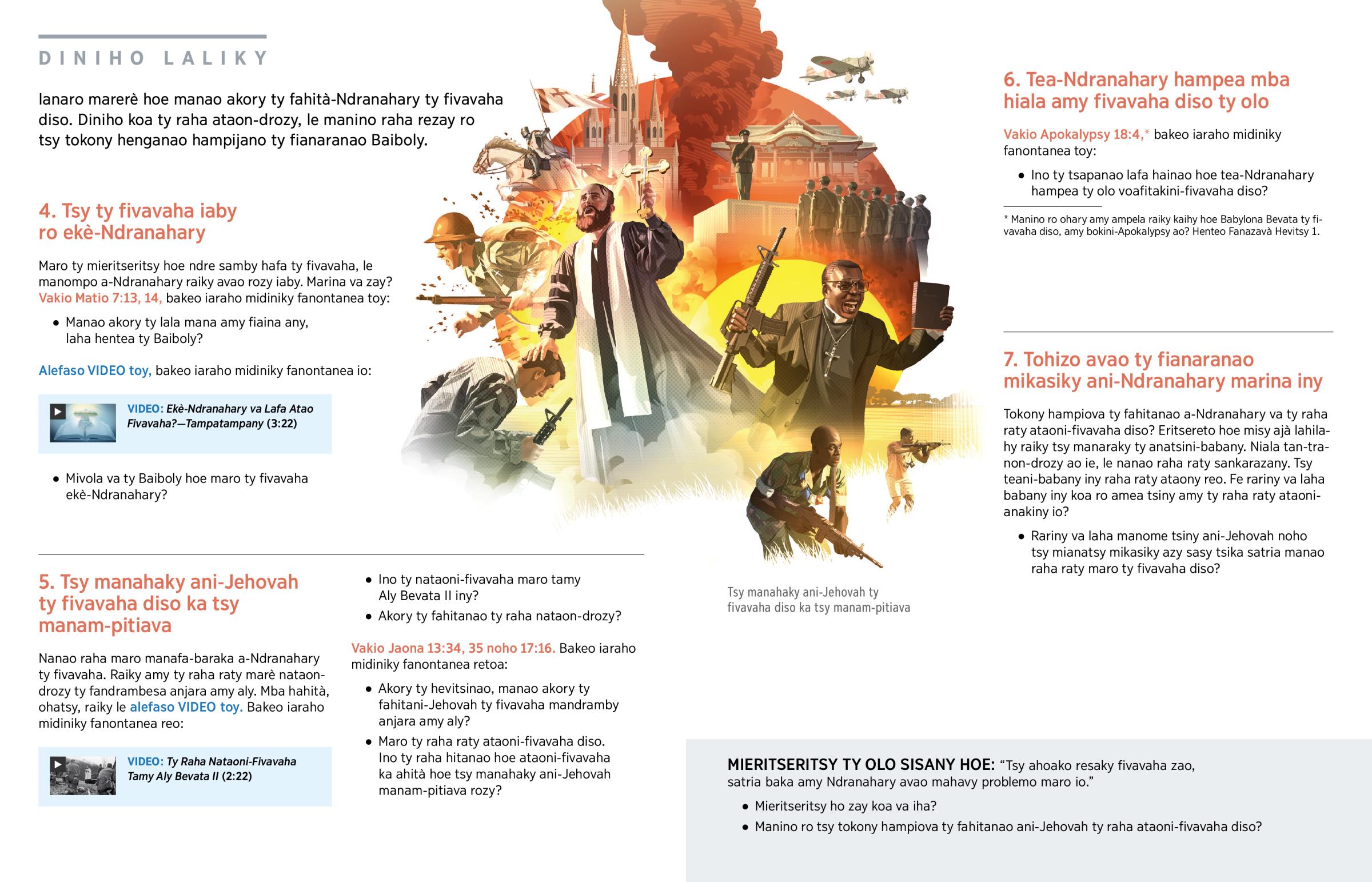 • Maro ty raha raty ataoni-fivavaha diso. Ino ty raha hitanao hoe ataoni-fivavaha ka ahità hoe tsy manahaky ani-Jehovah manam-pitiava rozy?