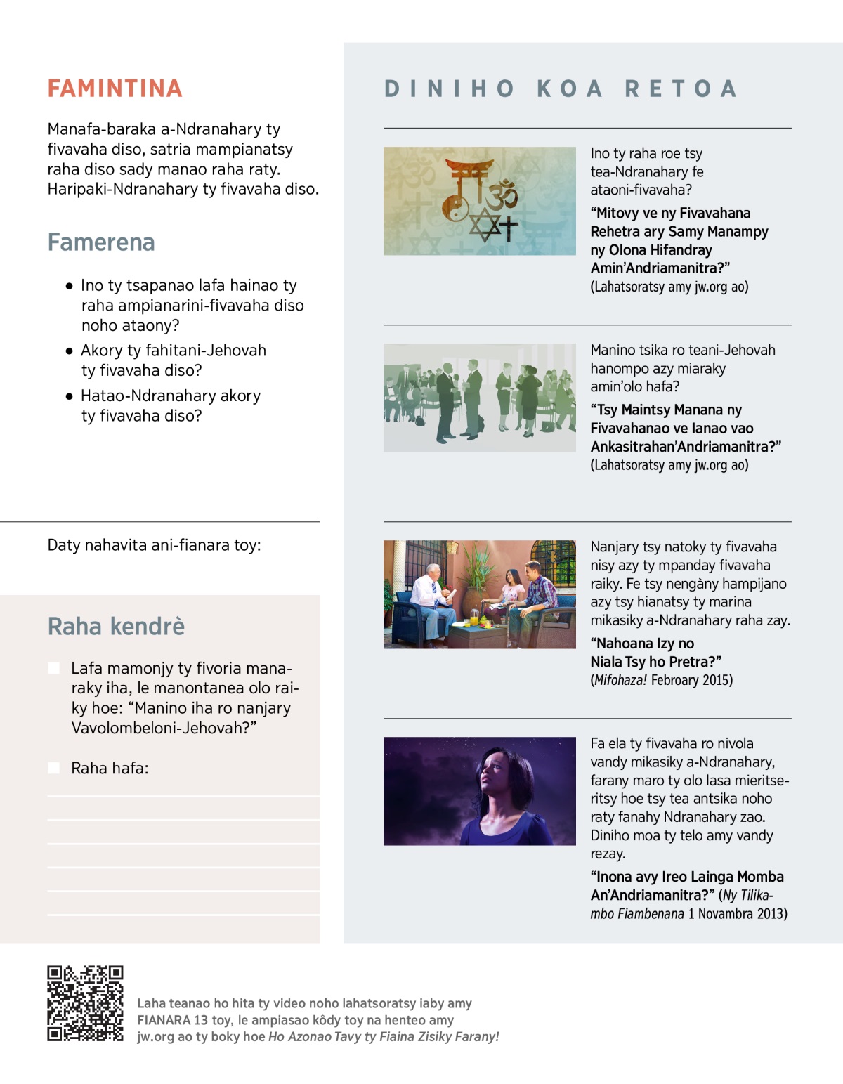 3. Akory ty fahità-Ndranahary ty fivavaha diso?