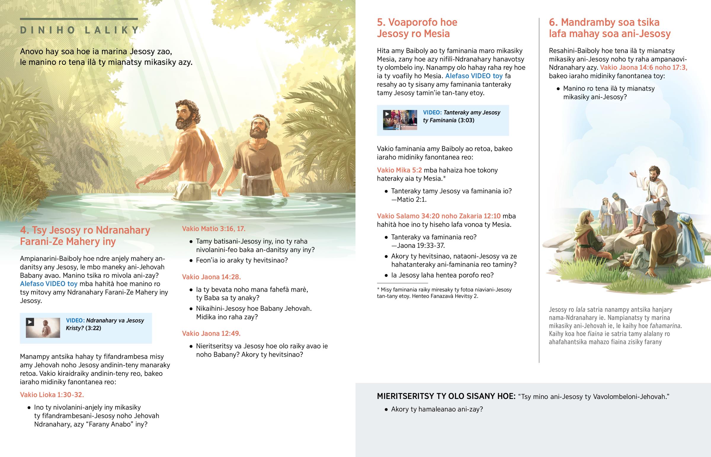Jesosy ro lala satria nanampy antsika hanjary nama-Ndranahary ie. Nampianatsy ty marina mikasiky ani-Jehovah ie, le kaihy hoe fahamarina. Kaihy koa hoe fiaina ie satria tamy alalany ro ahafahantsika mahazo fiaina zisiky farany