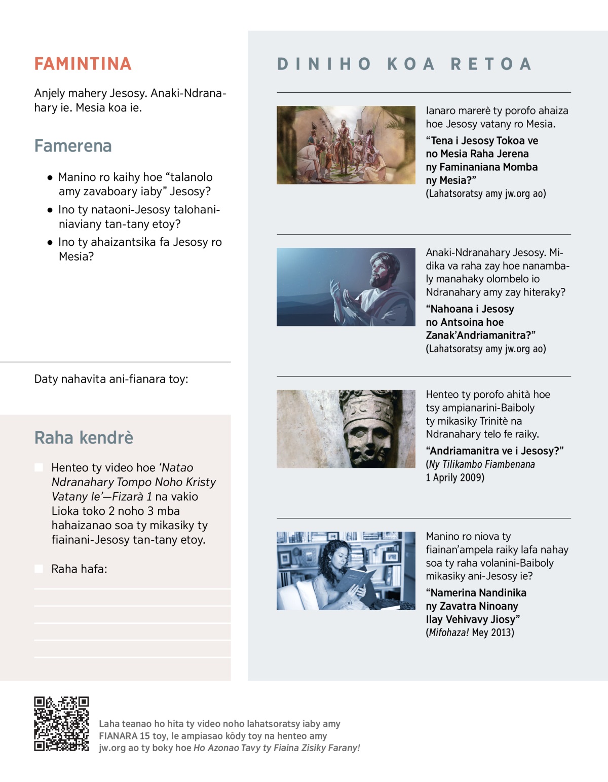 MIERITSERITSY TY OLO SISANY HOE: “Tsy mino ani-Jesosy ty Vavolombeloni-Jehovah.”