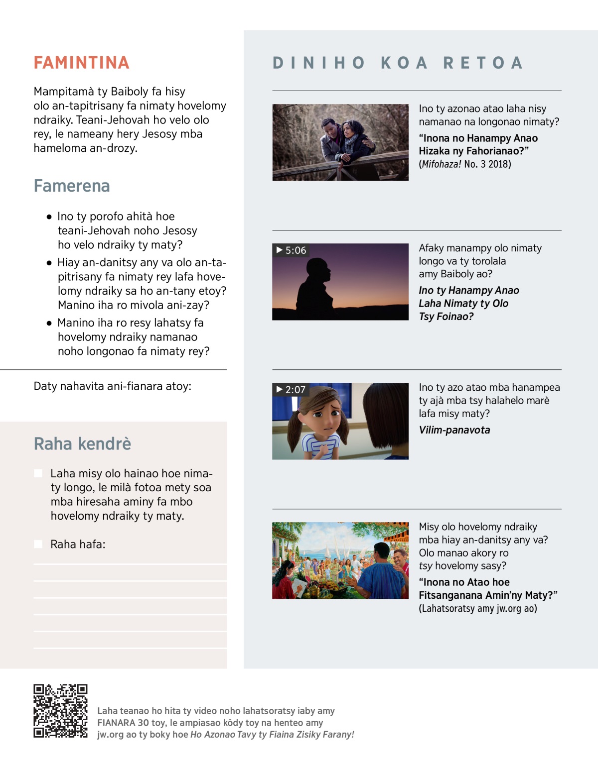 “Inona no Atao hoe Fitsanganana Amin’ny Maty?” (Lahatsoratsy amy jw.org ao)