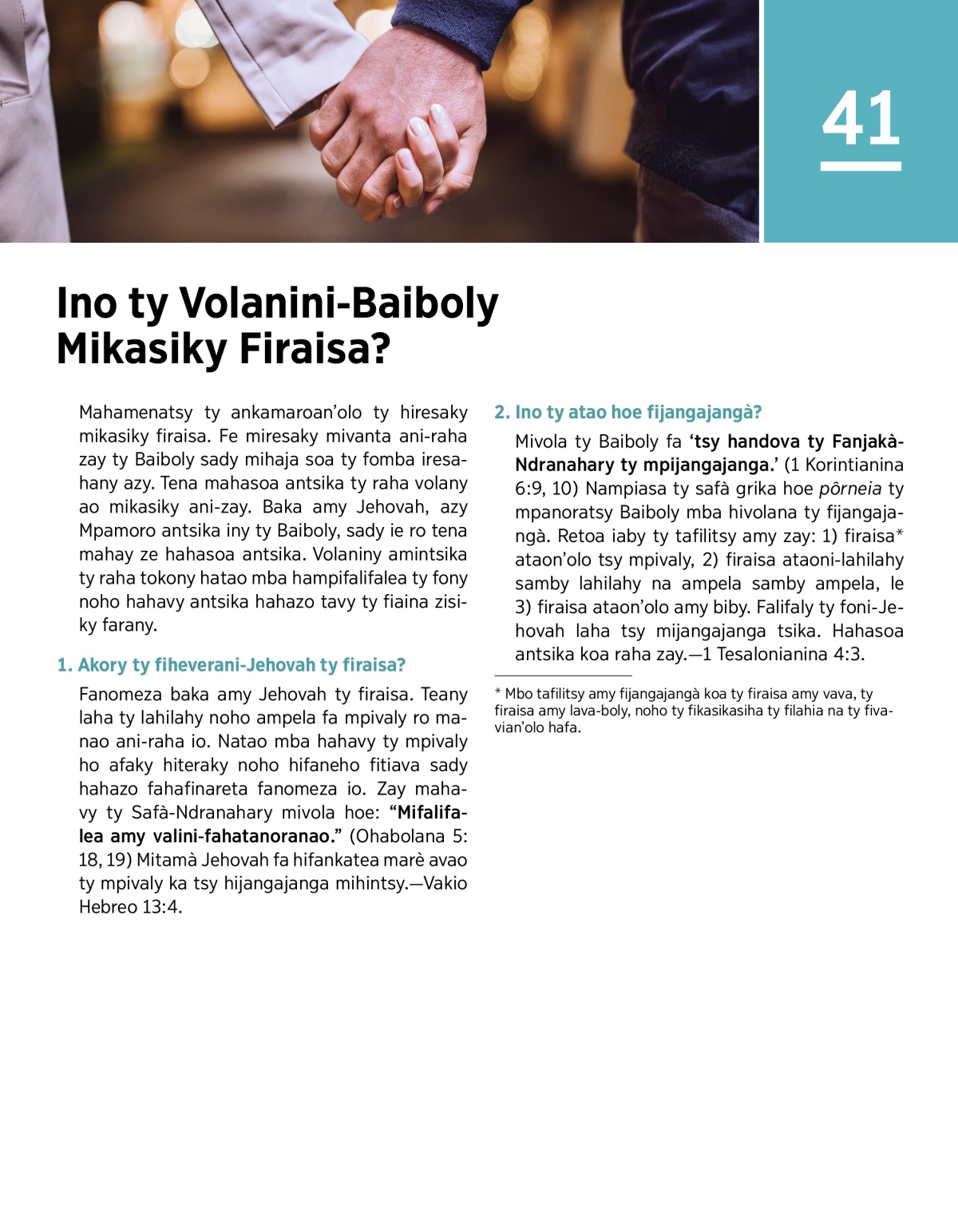 “Ratsy ve ny Firaisan’ny Samy Lehilahy na Samy Vehivahy?” (Lahatsoratsy amy jw.org ao)