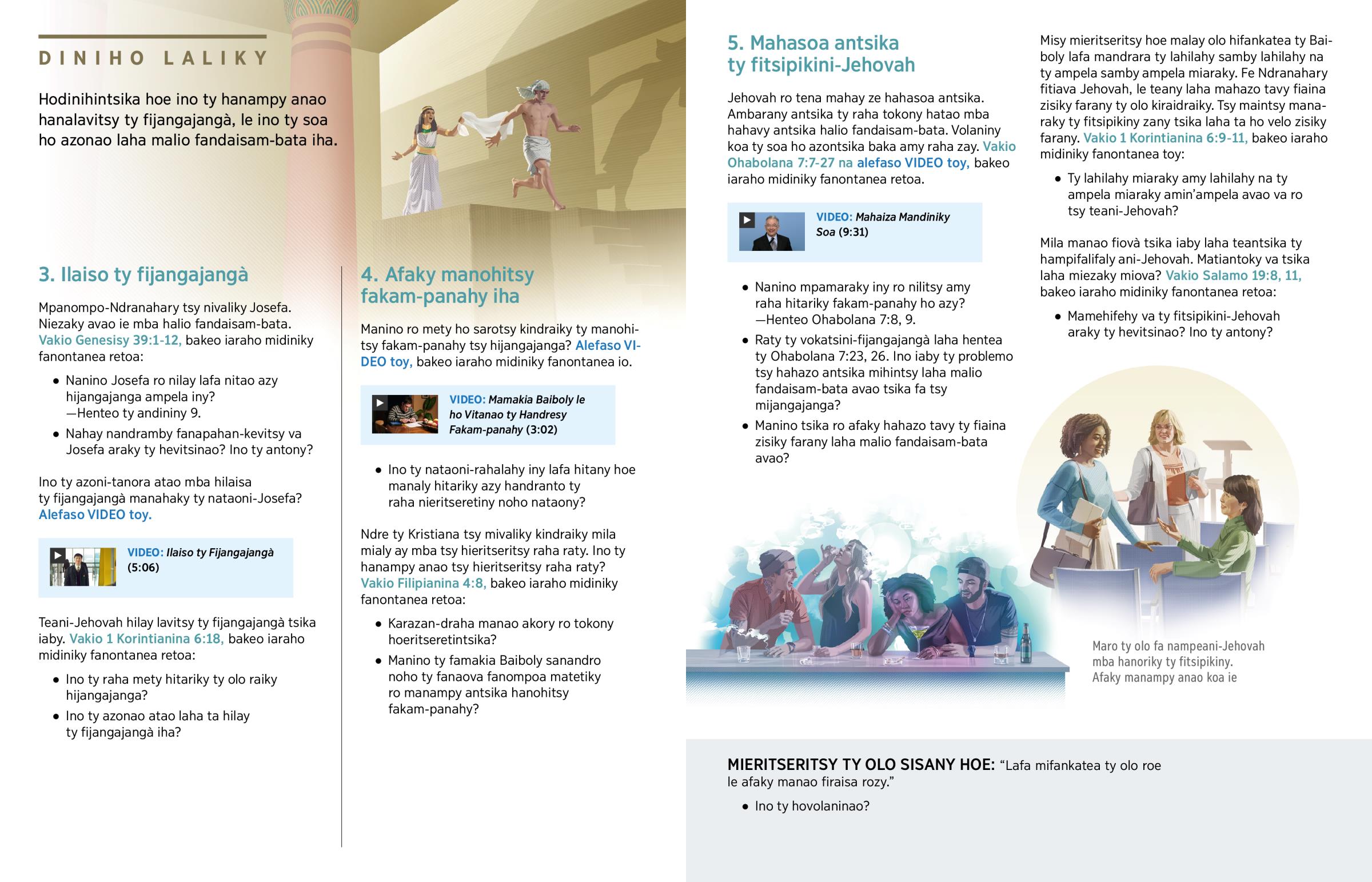 Jehovah ro tena mahay ze hahasoa antsika. Ambarany antsika ty raha tokony hatao mba hahavy antsika halio fandaisam-bata. Volaniny koa ty soa ho azontsika baka amy raha zay. Vakio Ohabolana 7:7-27 na alefaso VIDEO toy, bakeo iaraho midiniky fanontanea retoa.