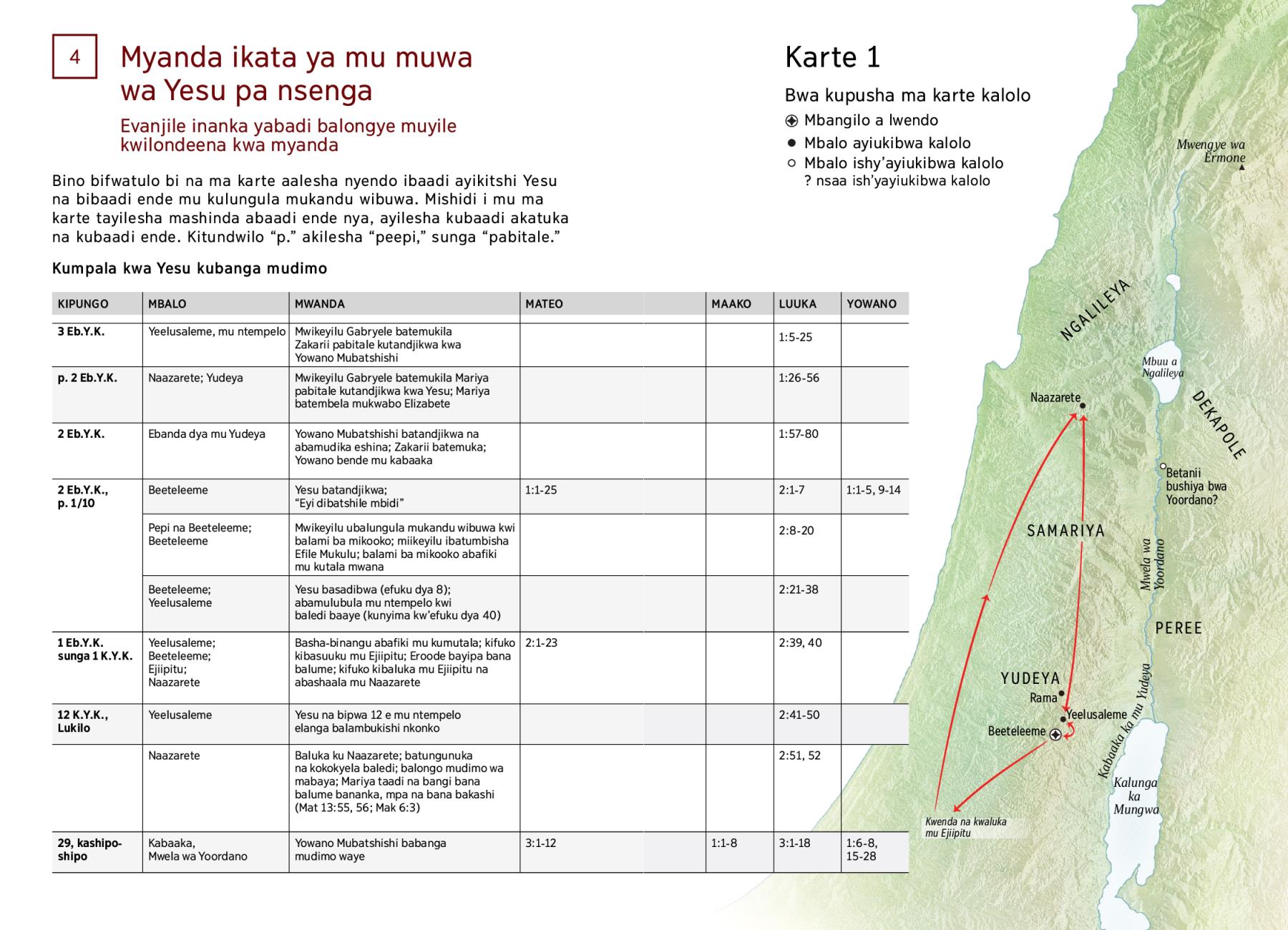 Bino bifwatulo bi na ma karte aalesha nyendo ibaadi ayikitshi Yesu na bibaadi ende mu kulungula mukandu wibuwa. Mishidi i mu ma karte tayilesha mashinda abaadi ende nya, ayilesha kubaadi akatuka na kubaadi ende. Kitundwilo “p.” akilesha “peepi,” sunga “pabitale.”