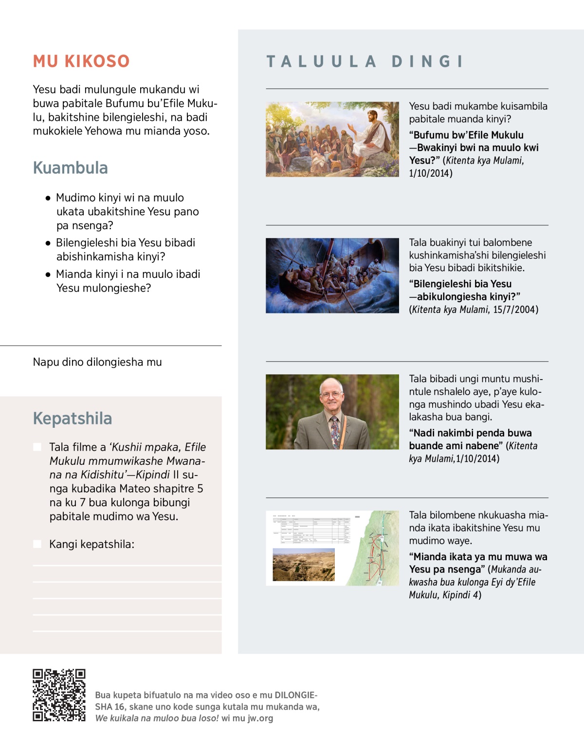 “Bilengieleshi bia Yesu—abikulongiesha kinyi?” (Kitenta kia Mulami, 15/7/2004)