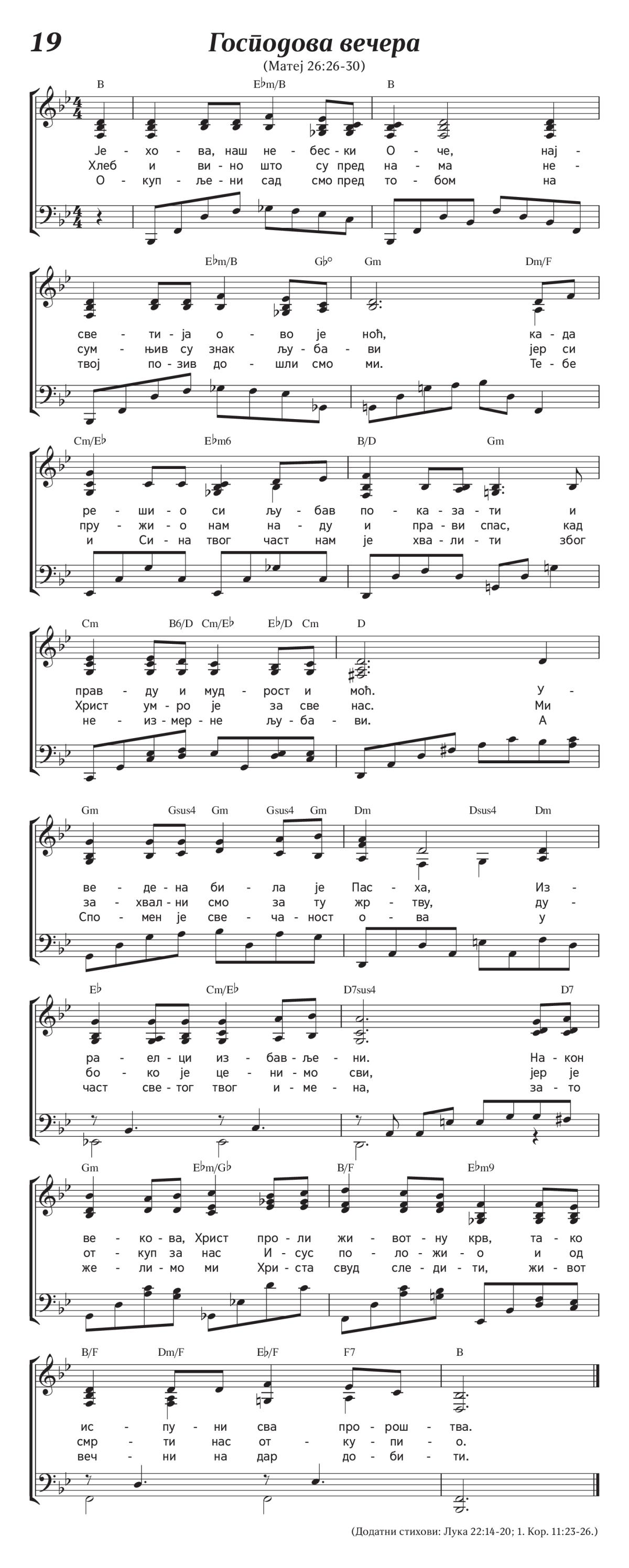 (Додатни стихови: Лука 22:14-20; 1. Кор. 11:23-26.)
