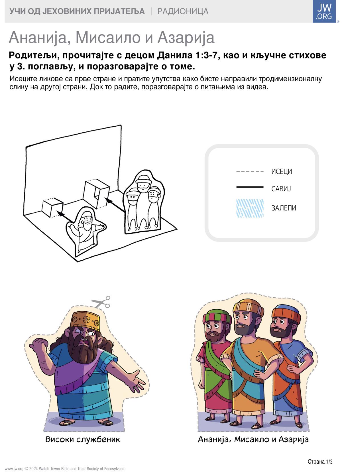 Помоћу овог радног листа научи нешто од Јеховиних пријатеља – Ананије, Мисаила и Азарије.