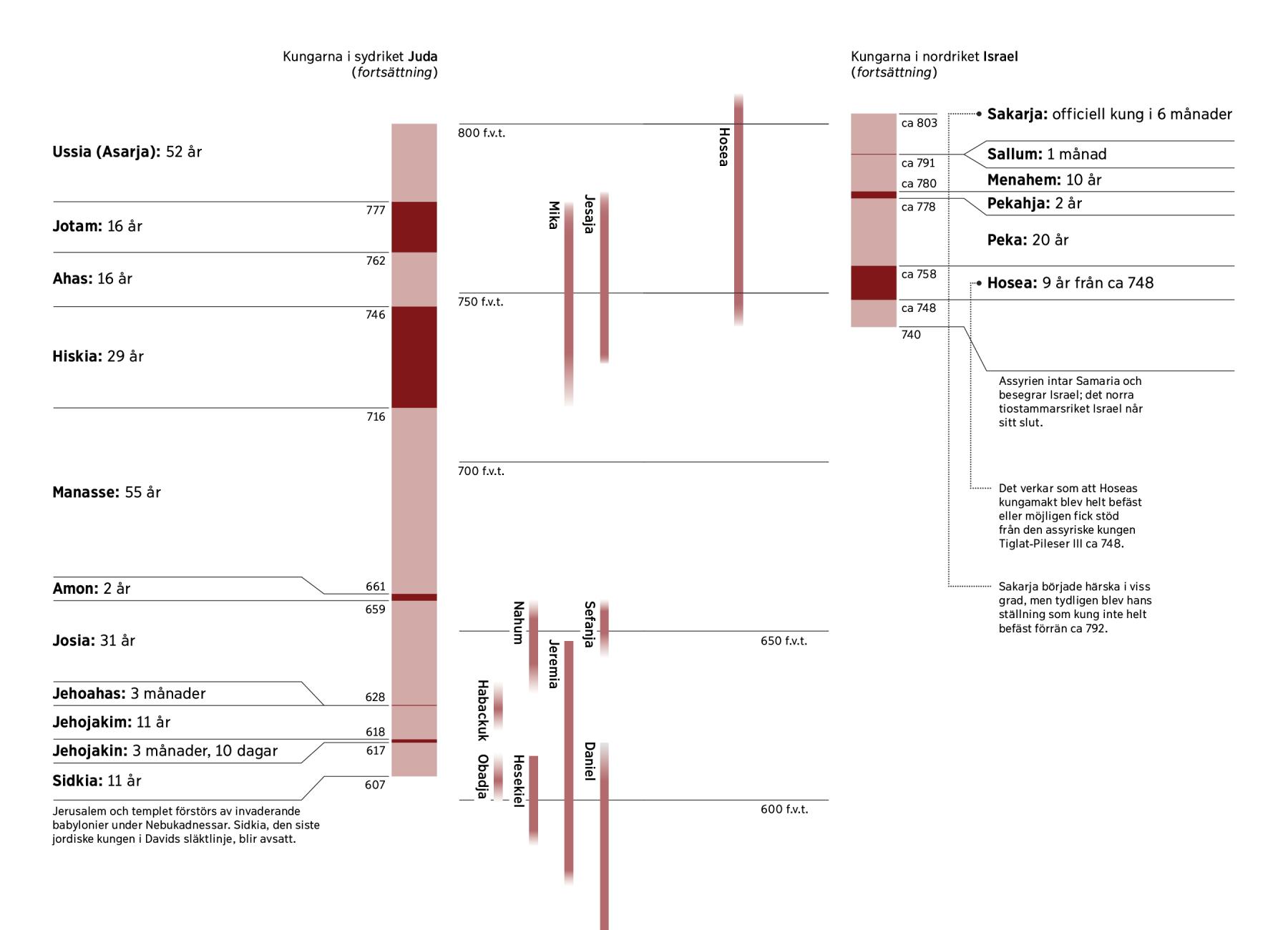 Jerusalem och templet förstörs av invaderande babylonier under Nebukadnessar. Sidkia, den siste jordiske kungen i Davids släktlinje, blir avsatt.