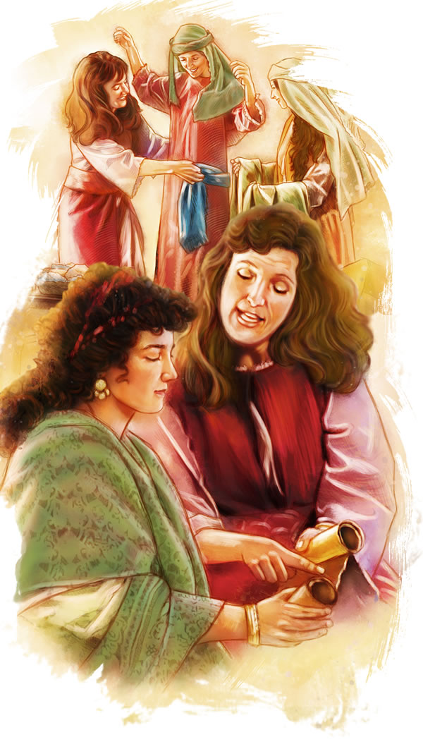 Men vet du vad som hände med Dorkas? Hon blev jättesjuk och dog. Hennes vänner blev väldigt ledsna. Så några ger sig i väg till Petrus, som är på besök i en stad ungefär 1,5 mil bort, och ber honom skynda sig att följa med dem. Petrus gör det, och när han kommer fram går han upp på övervåningen där Dorkas ligger. Kvinnorna gråter och visar alla fina kläder som Dorkas har sytt till dem.