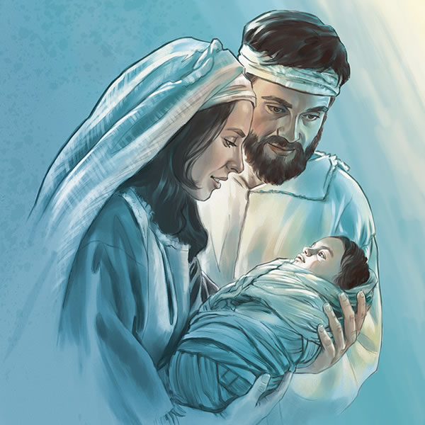 Jehova Gud överförde Jesu liv från himlen till Marias livmoder med hjälp av sin heliga ande. Maria blev alltså gravid med Jesus utan att någon man var inblandad. En grupp änglar förkunnade Jesu födelse för några herdar som bodde utomhus för att kunna vakta sin hjord under natten. (Lukas 2:8–12) Jesus föddes alltså inte mitt i vintern, utan troligen tidigt i oktober, när det fortfarande var varmt ute. Senare tog Maria och hennes man Josef med sig Jesus hem till Nasaret, och där växte han upp. Josef uppfostrade Jesus som sin adoptivson. (Läs Matteus 1:18–23.)
