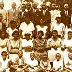 Skolan i Rikets tjänst i Sierra Leone 1961. William Nushy (mitten i bakre raden), Charles Chappell (andra från höger i mittenraden) och Reva Chappell (tredje från höger i främre raden).