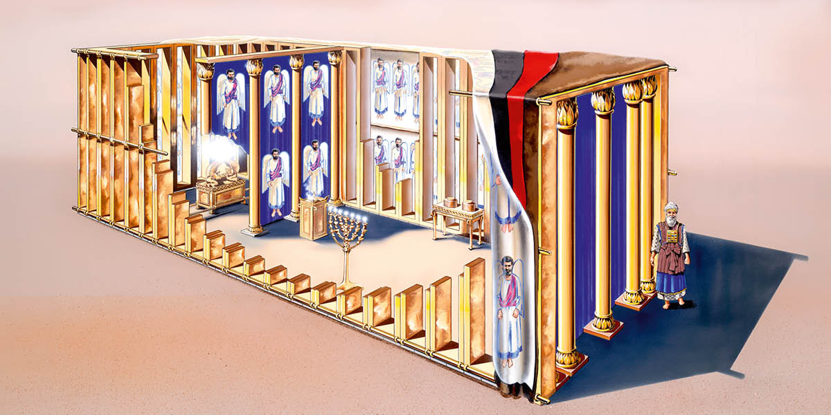 Mellan det heliga och det allra heligaste fanns ett förhänge som var utsmyckat med broderade keruber (2Mo 36:35), och avskärmningen för tältets ingång, som låg mot öster, var gjord av ullgarn i starka färger och av lingarn (2Mo 36:37).