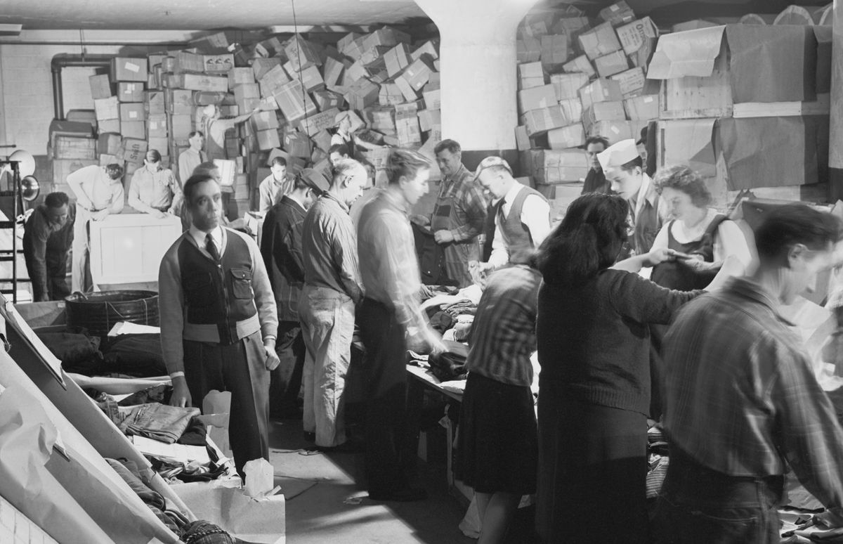 Mashahidi nchini Marekani wakichambua nguo zilizotolewa kama mchango kabla ya kuzipeleka Ulaya