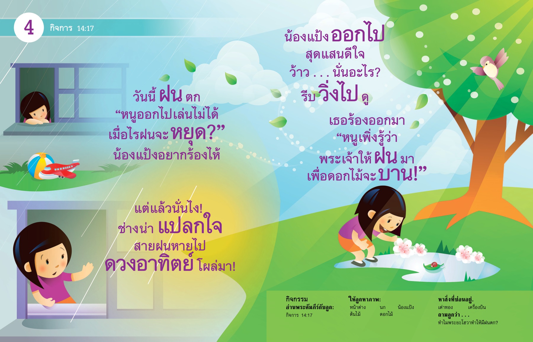เธอร้องออกมา “หนูเพิ่งรู้ว่าพระเจ้าให้ฝนมาเพื่อดอกไม้จะบาน!”