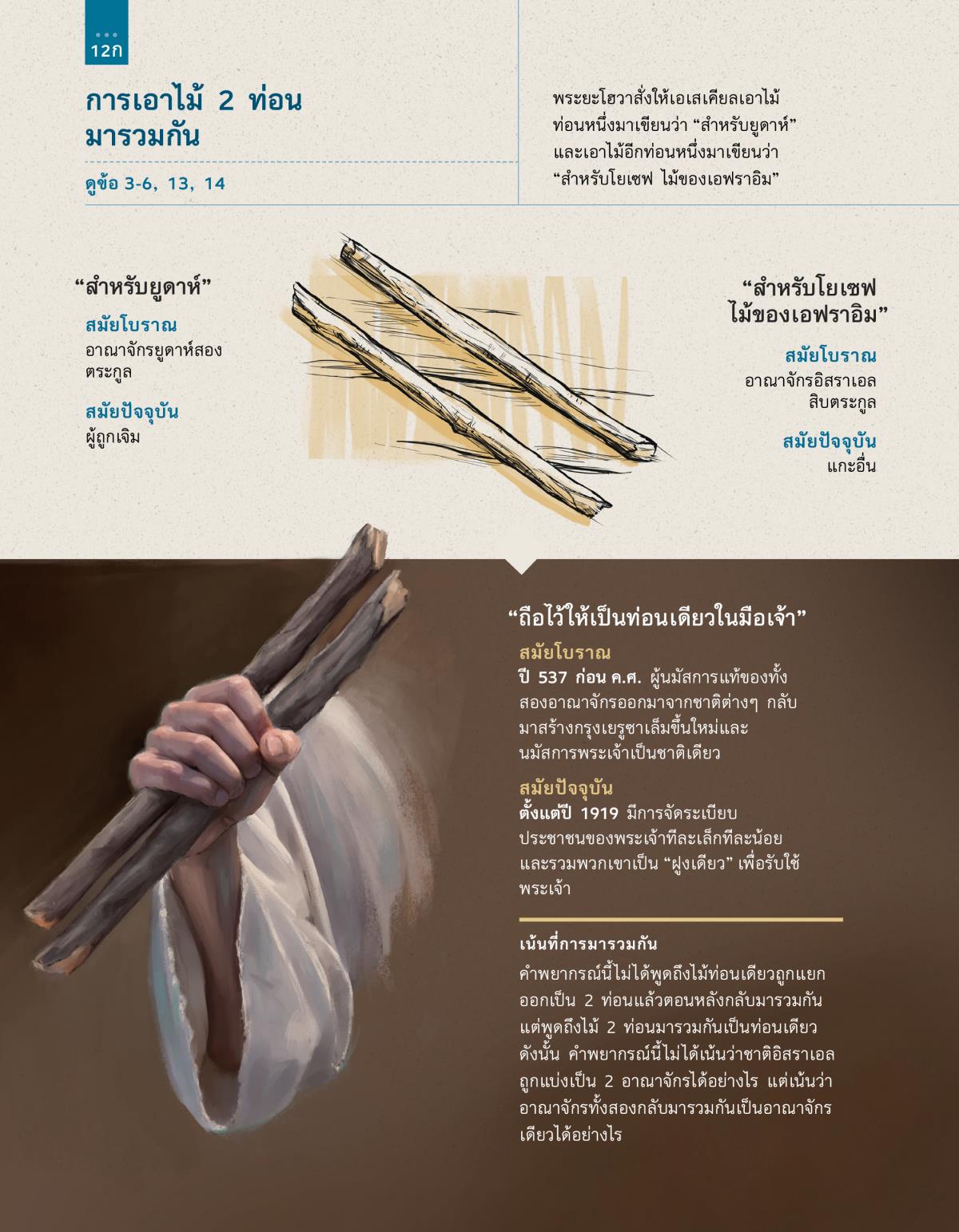พระยะโฮวาสั่งให้เอเสเคียลเอาไม้ท่อนหนึ่งมาเขียนว่า “สำหรับยูดาห์” และเอาไม้อีกท่อนหนึ่งมาเขียนว่า “สำหรับโยเซฟ ไม้ของเอฟราอิม”