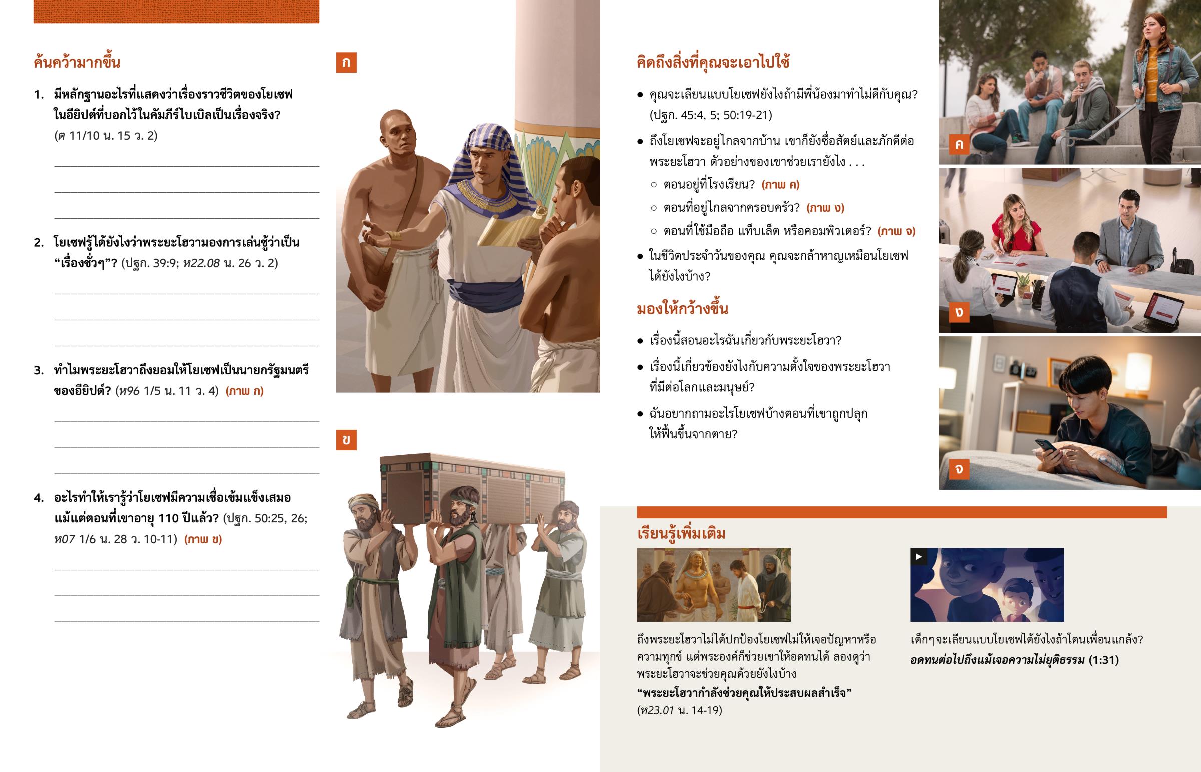 4. อะไรทำให้เรารู้ว่าโยเซฟมีความเชื่อเข้มแข็งเสมอแม้แต่ตอนที่เขาอายุ 110 ปีแล้ว? (ปฐก. 50:25, 26; ห07 1/6 น. 28 ว. 10-11) (ภาพ ข)