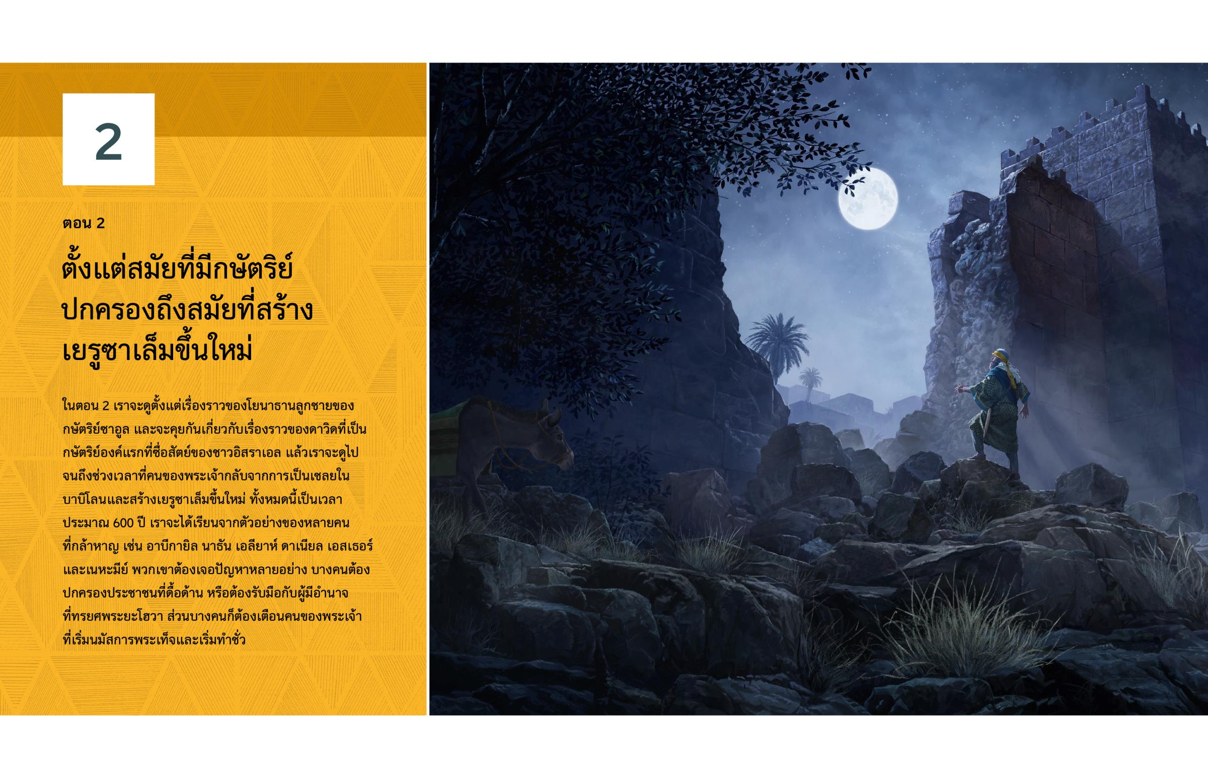 ในตอน 2 เราจะดูตั้งแต่เรื่องราวของโยนาธานลูกชายของกษัตริย์ซาอูล และจะคุยกันเกี่ยวกับเรื่องราวของดาวิดที่เป็นกษัตริย์องค์แรกที่ซื่อสัตย์ของชาวอิสราเอล แล้วเราจะดูไปจนถึงช่วงเวลาที่คนของพระเจ้ากลับจากการเป็นเชลยในบาบิโลนและสร้างเยรูซาเล็มขึ้นใหม่ ทั้งหมดนี้เป็นเวลาประมาณ 600 ปี เราจะได้เรียนจากตัวอย่างของหลายคนที่กล้าหาญ เช่น อาบีกายิล นาธัน เอลียาห์ ดาเนียล เอสเธอร์ และเนหะมีย์ พวกเขาต้องเจอปัญหาหลายอย่าง บางคนต้องปกครองประชาชนที่ดื้อด้าน หรือต้องรับมือกับผู้มีอำนาจที่ทรยศพระยะโฮวา ส่วนบางคนก็ต้องเตือนคนของพระเจ้าที่เริ่มนมัสการพระเท็จและเริ่มทำชั่ว