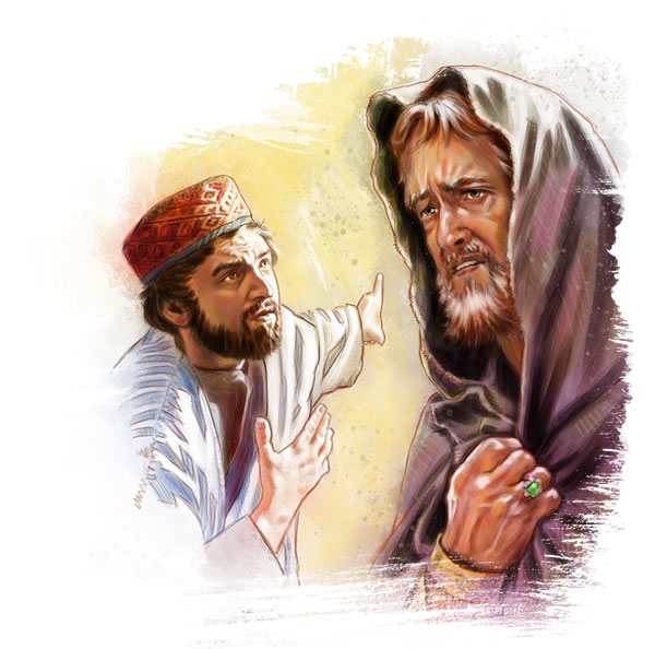 ซีบาบอกดาวิดว่ามะฟีโบเซ็ธไม่ยอมไปเพราะต้องการจะเป็นกษัตริย์. ดาวิดเชื่อคำโกหกนั้น! ท่านจึงยกทรัพย์สมบัติทั้งหมดของมะฟีโบเซ็ธให้ซีบา. ต่อมา ดาวิดรบชนะอับซาโลมและกลับมายังกรุงเยรูซาเลม. ตอนนี้ท่านได้ฟังเรื่องราวจากปากของมะฟีโบเซ็ธเอง. ดาวิดตัดสินให้มะฟีโบเซ็ธกับซีบาแบ่งทรัพย์สมบัติกัน. ลูกคิดว่ามะฟีโบเซ็ธจะทำอย่างไร?—