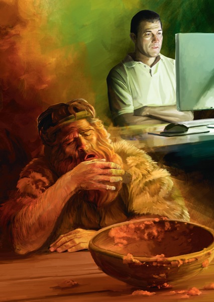 11 เรื่องของเอซาวมีบทเรียนที่เป็นประโยชน์สำหรับเรา. อัครสาวกเปาโลเตือนคริสเตียนให้ระวัง “เพื่อจะไม่มีคนผิดประเวณีหรือคนที่ไม่รู้คุณค่าสิ่งศักดิ์สิทธิ์เหมือนเอซาวที่ได้เอาสิทธิบุตรหัวปีของตนไปแลกกับอาหารมื้อเดียว.” (ฮีบรู 12:16) เราจำเป็นต้องเรียนรู้จากคำเตือนดังกล่าว. เราต้องเห็นค่าสิ่งศักดิ์สิทธิ์เสมอเพื่อจะต้านทานการล่อใจและรักษามรดกของเราไว้. เมื่อเปาโลพรรณนาสิ่งที่เอซาวทำ ทำไมเปาโลจึงกล่าวถึงการผิดประเวณีด้วย? ที่เป็นอย่างนั้นก็เพราะถ้าเราทำเหมือนเอซาวและปล่อยให้ความปรารถนาทางกายครอบงำเรา อาจเป็นไปได้มากทีเดียวที่เราจะพลาดพลั้งทำผิดร้ายแรงอย่างเช่นการผิดประเวณี ซึ่งทำให้เราสูญเสียมรดกของเรา.