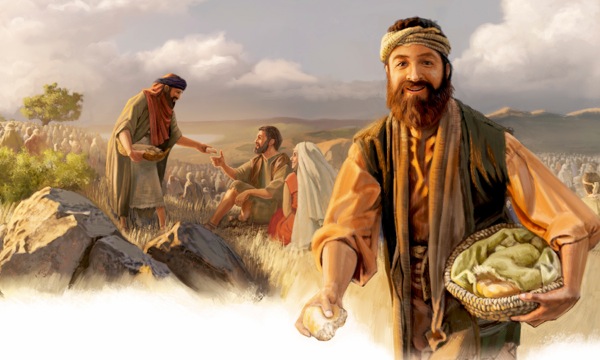 พระเยซูทรงเลี้ยงอาหารหลายพันคนโดยใช้คนเพียงไม่กี่คน (ดูข้อ 4)