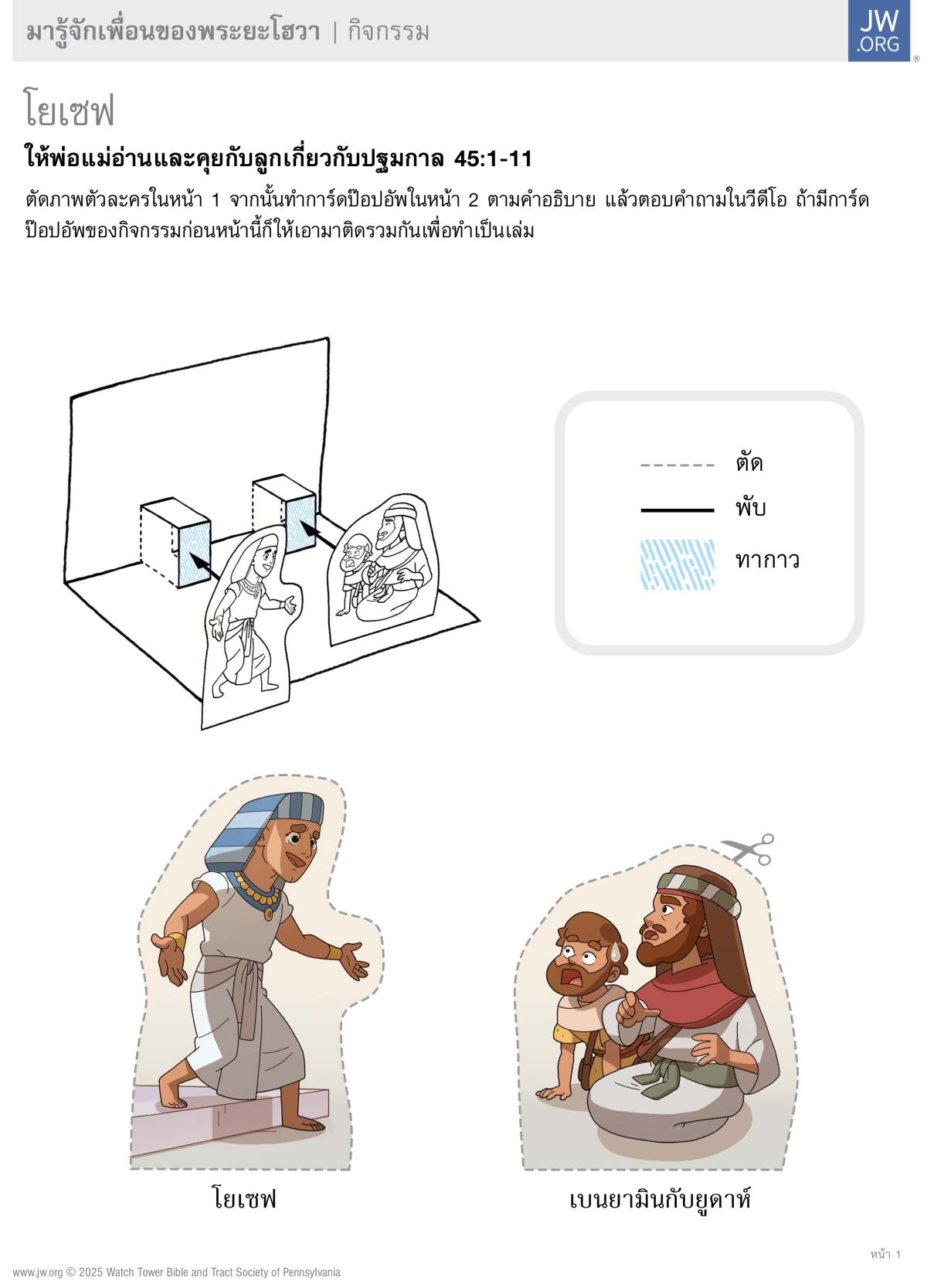 พิมพ์กิจกรรมนี้ออกมาเพื่อทำความรู้จักโยเซฟ ที่เป็นเพื่อนของพระยะโฮวา
