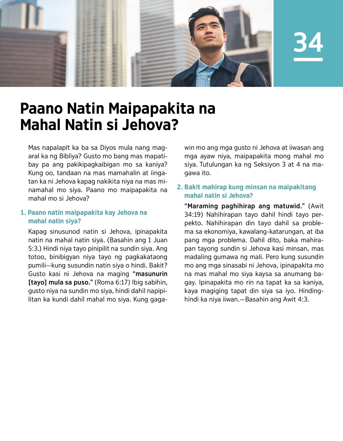 Kapag sinusunod natin si Jehova, ipinapakita natin na mahal natin siya. (Basahin ang 1 Juan 5:3.) Hindi niya tayo pinipilit na sundin siya. Ang totoo, binibigyan niya tayo ng pagkakataong pumili—kung susundin natin siya o hindi. Bakit? Gusto kasi ni Jehova na maging “masunurin [tayo] mula sa puso.” (Roma 6:17) Ibig sabihin, gusto niya na sundin mo siya, hindi dahil napipilitan ka kundi dahil mahal mo siya. Kung gagawin mo ang mga gusto ni Jehova at iiwasan ang mga ayaw niya, maipapakita mong mahal mo siya. Tutulungan ka ng Seksiyon 3 at 4 na magawa ito.