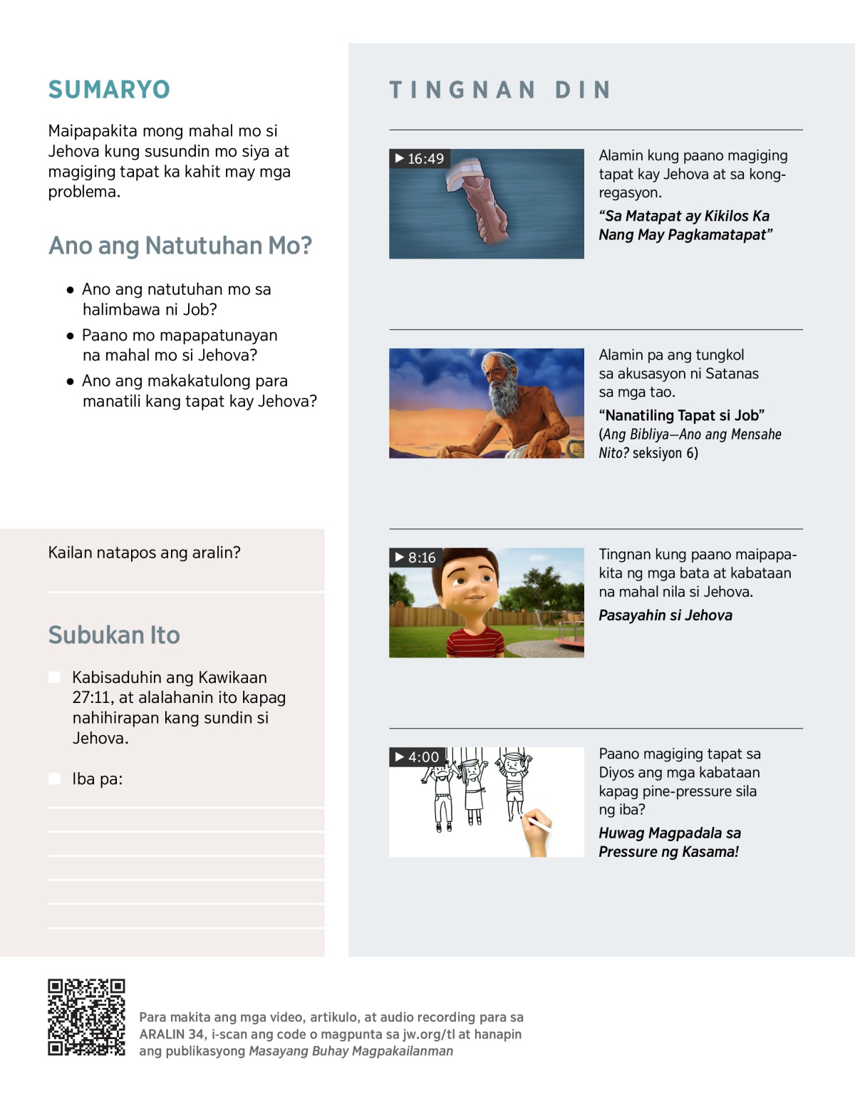 “Maraming paghihirap ang matuwid.” (Awit 34:19) Nahihirapan tayo dahil hindi tayo perpekto. Nahihirapan din tayo dahil sa problema sa ekonomiya, kawalang-katarungan, at iba pang mga problema. Dahil dito, baka mahirapan tayong sundin si Jehova kasi minsan, mas madaling gumawa ng mali. Pero kung susundin mo ang mga sinasabi ni Jehova, ipinapakita mo na mas mahal mo siya kaysa sa anumang bagay. Ipinapakita mo rin na tapat ka sa kaniya, kaya magiging tapat din siya sa iyo. Hinding-hindi ka niya iiwan.—Basahin ang Awit 4:3.