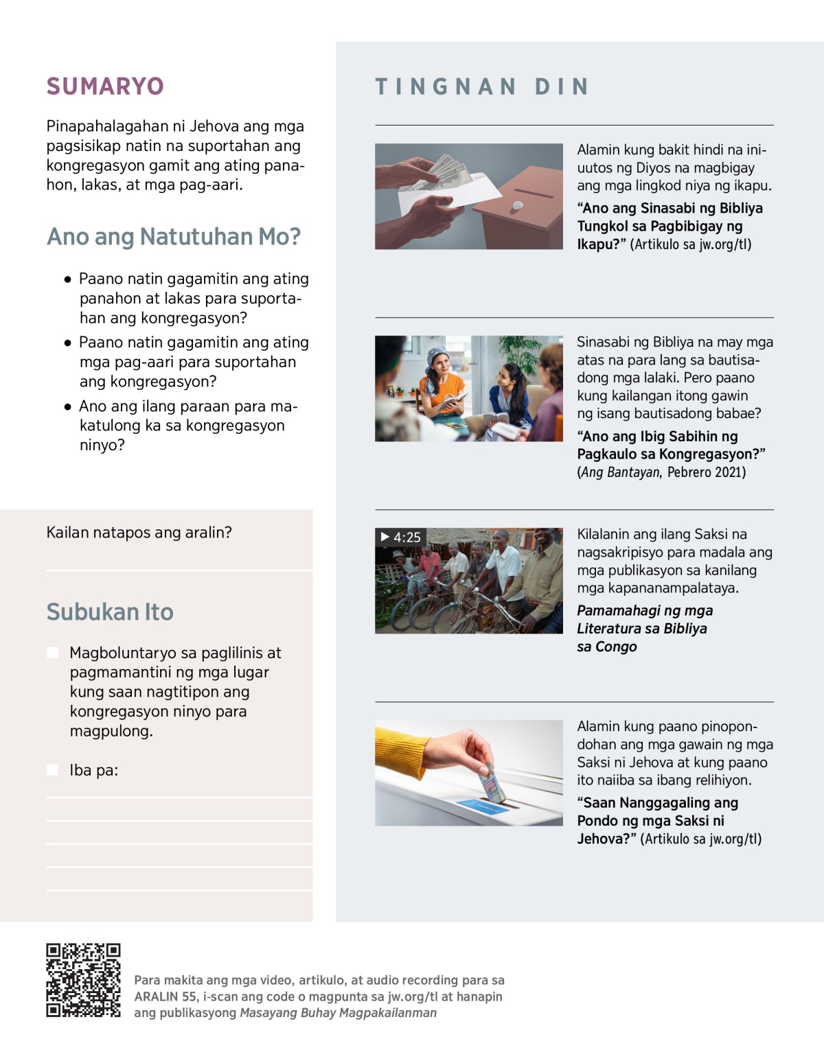 • Paano natin gagamitin ang ating mga pag-aari para suportahan ang kongregasyon?