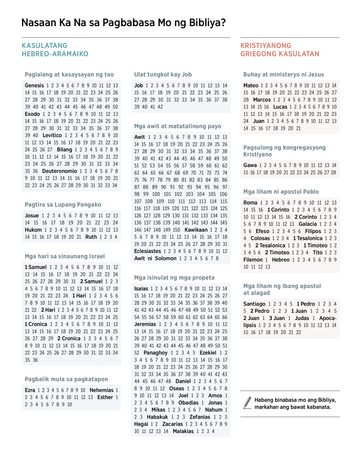 Habang binabasa mo ang Bibliya, markahan ang bawat kabanata.