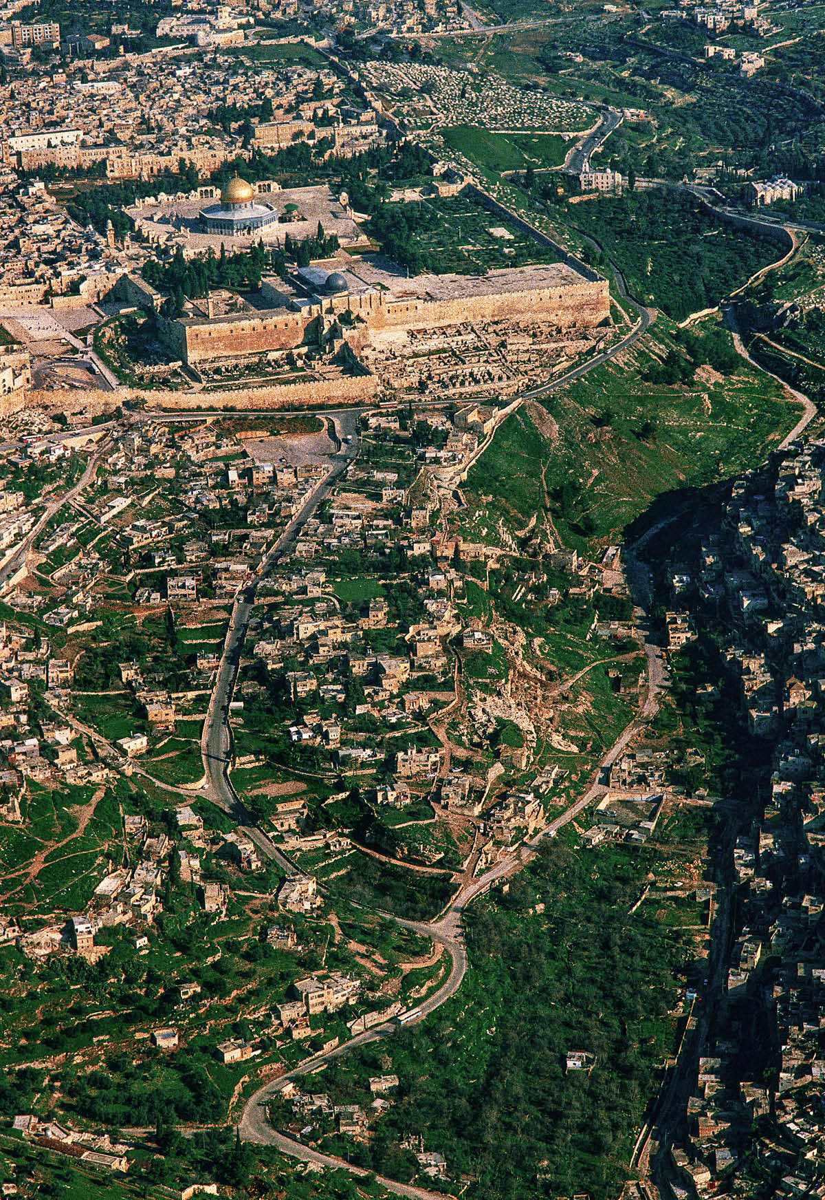 Ang lugar ng templo gaya ng makikita mula sa Bundok ng mga Olibo. Nasa harapan ang mga dakong libingan ng mga Judio na naniniwalang balang-araw ay magpapakita rito ang Mesiyas