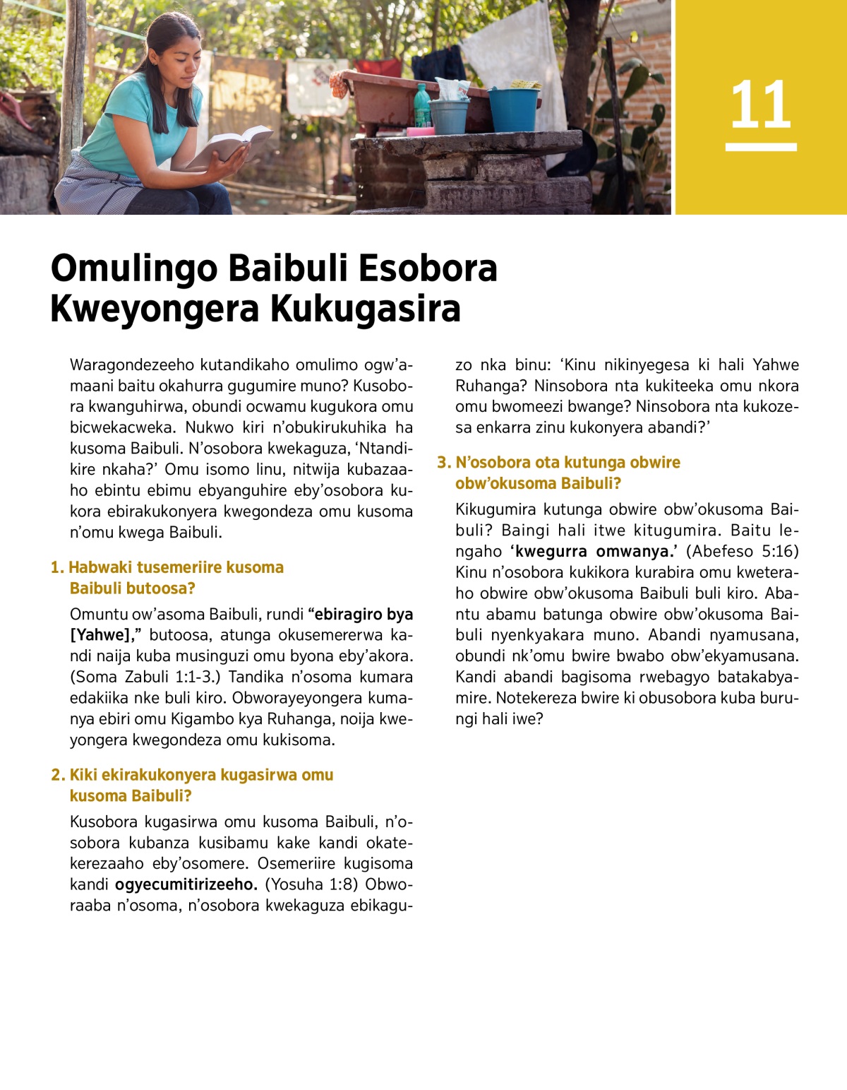 Yega omulingo osobora kweyongera kwegondeza omu kusoma Baibuli. Rora omulingo osobora kwetakaniza kurungi nukwo ogasirwe muno omu kwesomesa Baibuli.