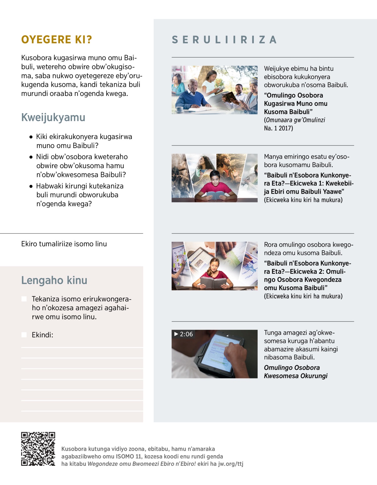 Nidi obw’osobora kweteraho obwire obw’okusoma hamu n’obw’okwesomesa Baibuli?