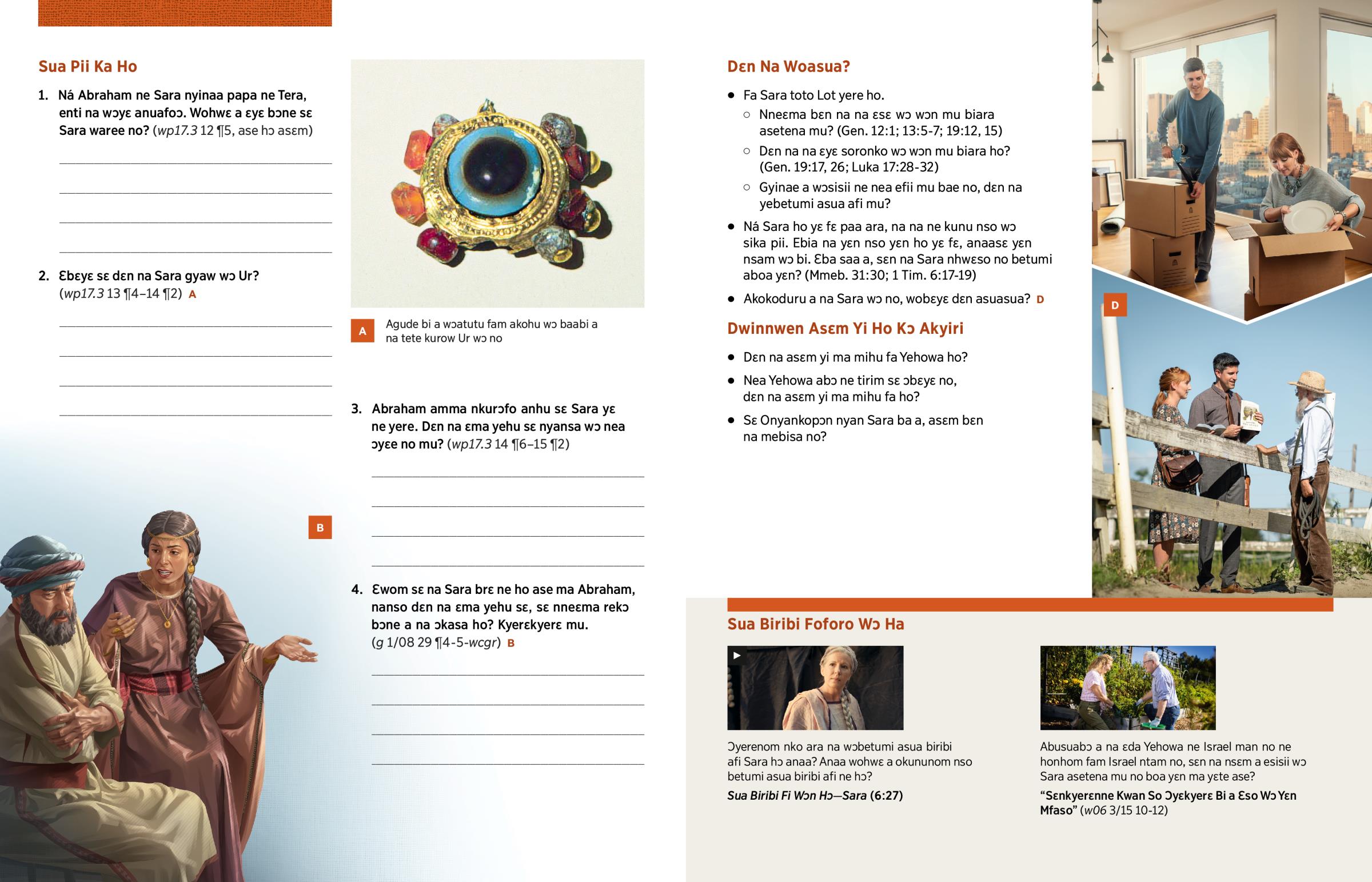 1. Ná Abraham ne Sara nyinaa papa ne Tera, enti na wɔyɛ anuafoɔ. Wohwɛ a ɛyɛ bɔne sɛ Sara waree no? (wp17.3 12 ¶5, ase hɔ asɛm)