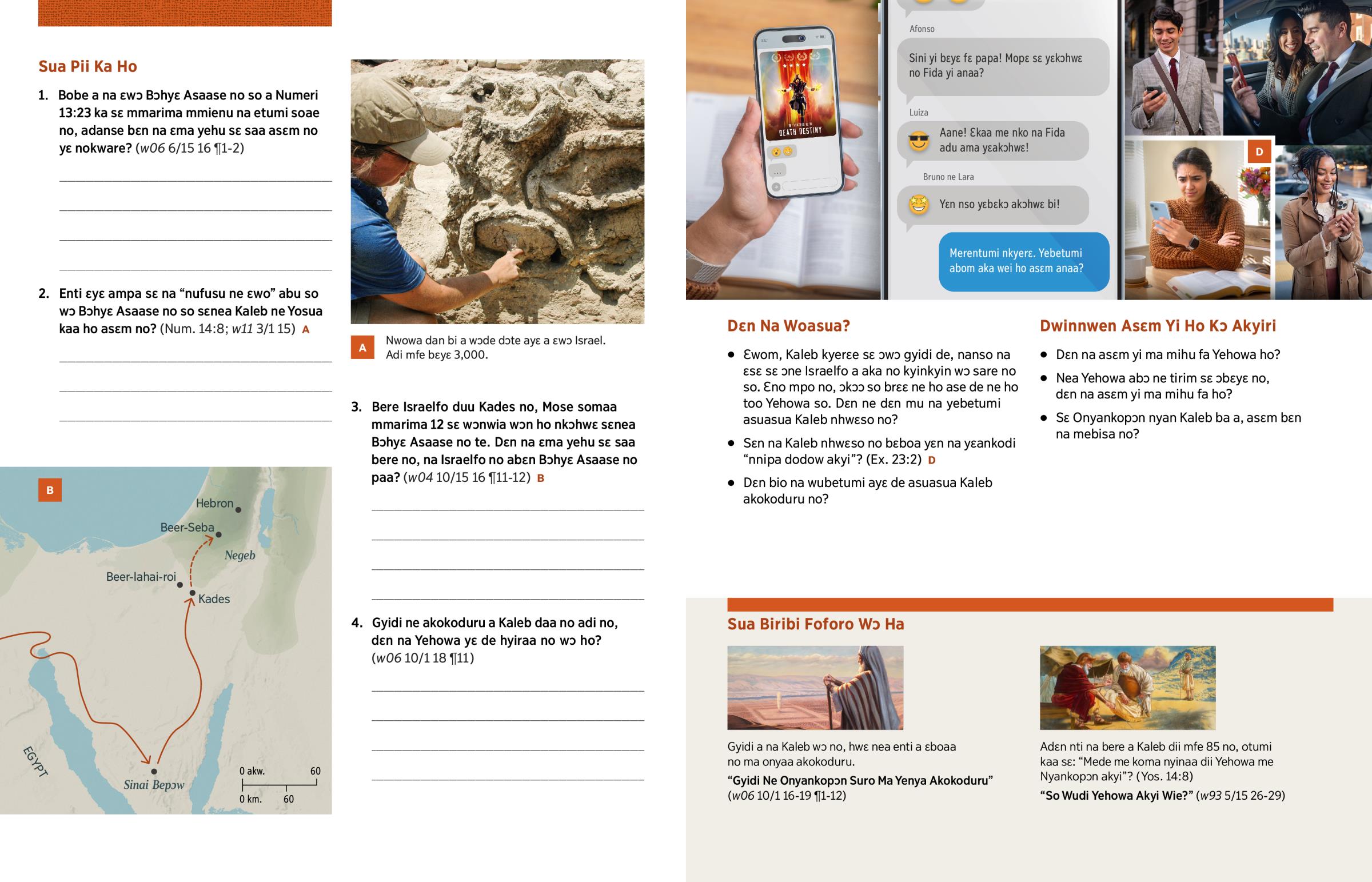 Ɛwom, Kaleb kyerɛe sɛ ɔwɔ gyidi de, nanso na ɛsɛ sɛ ɔne Israelfo a aka no kyinkyin wɔ sare no so. Ɛno mpo no, ɔkɔɔ so brɛɛ ne ho ase de ne ho too Yehowa so. Dɛn ne dɛn mu na yebetumi asuasua Kaleb nhwɛso no?