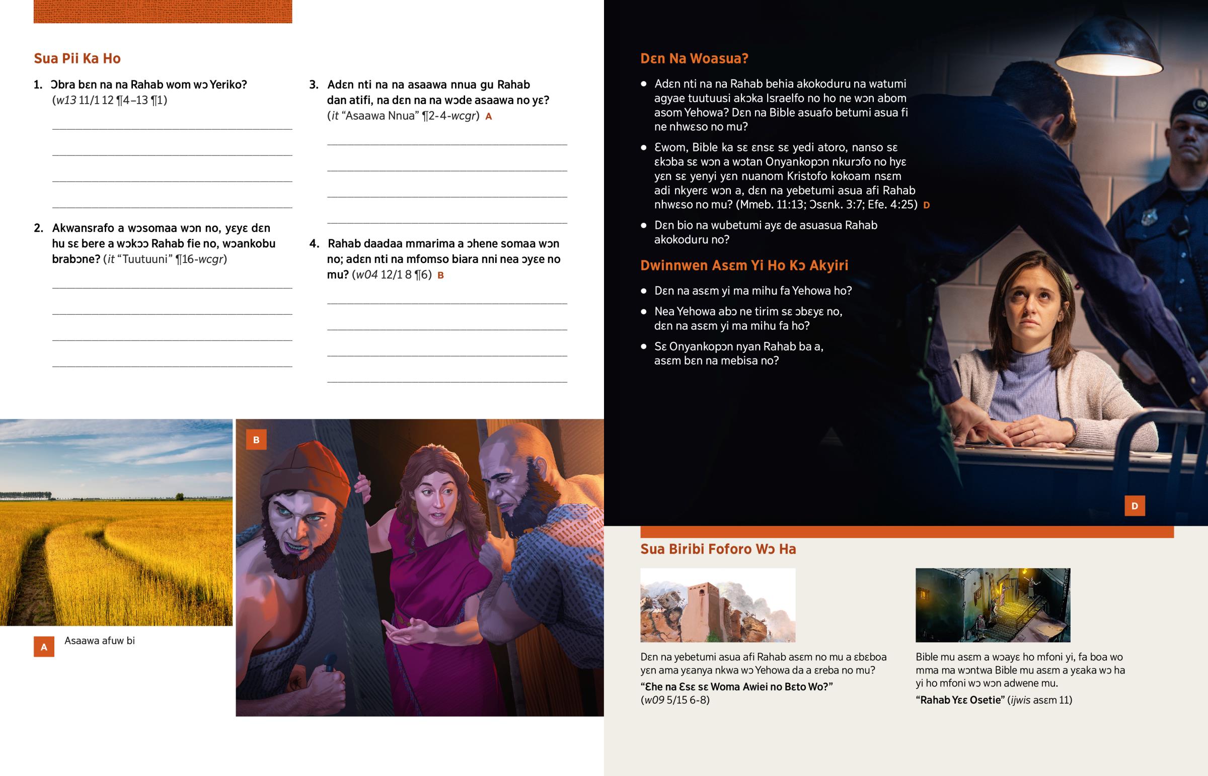 4. Rahab daadaa mmarima a ɔhene somaa wɔn no; adɛn nti na mfomso biara nni nea ɔyɛe no mu? (w04 12/1 8 ¶6) B