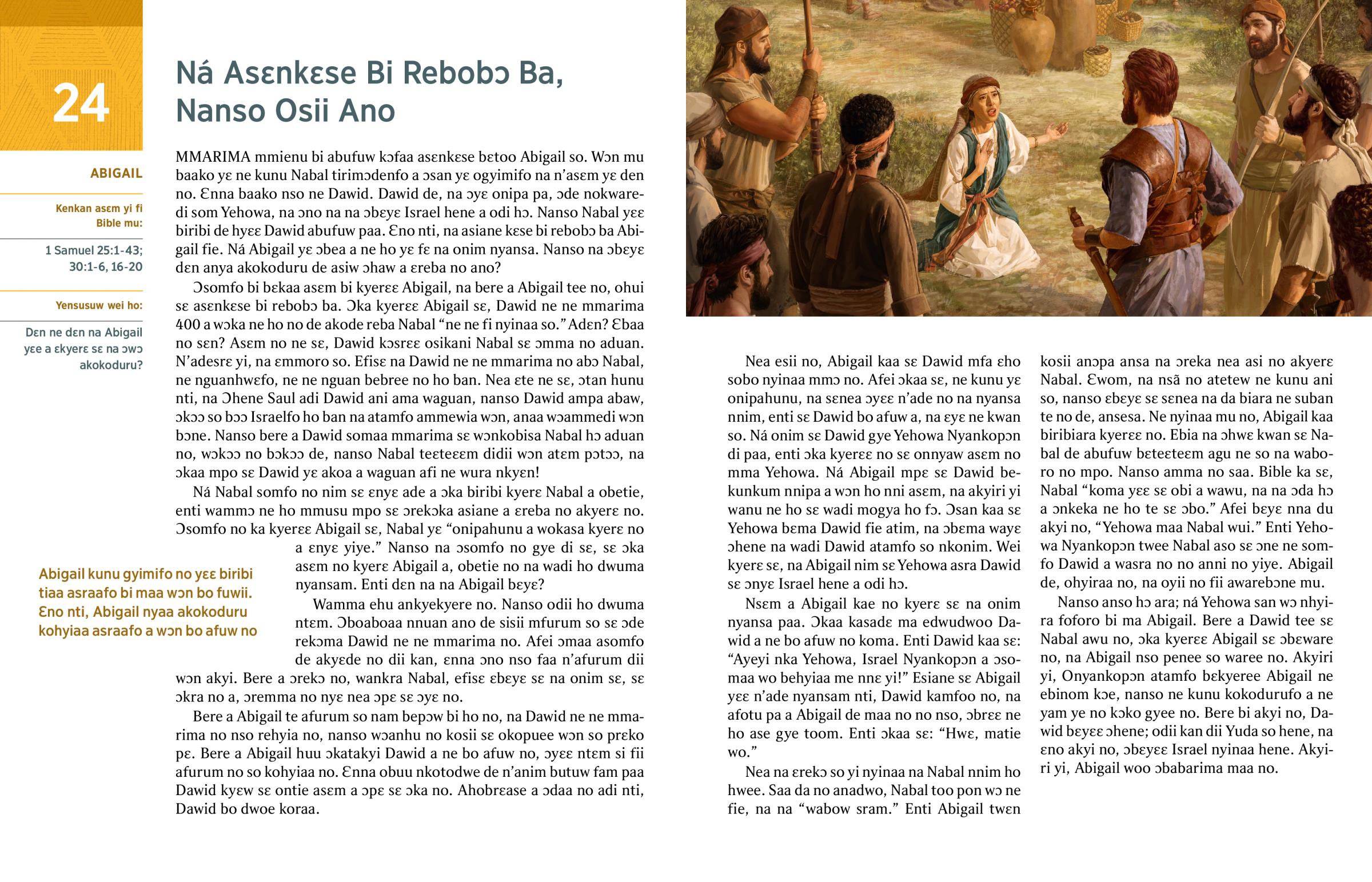 1. Ɛbɛyɛ sɛ ɛbaa no sɛn na Abigail waree Nabal? (ia 77 ¶6)