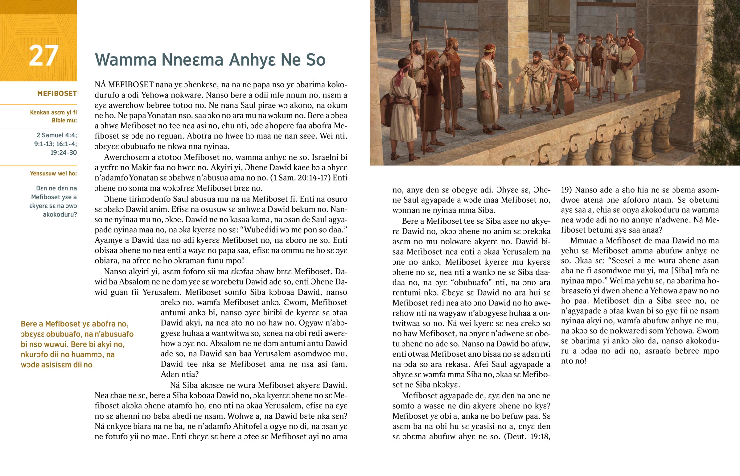 3. Dɛn na yenim fa Mefiboset ho a ɛma yehu sɛ, na ɛnyɛ ade a obetu Dawid ade so da? (w02 2/15 14 ¶11, ase hɔ asɛm) B
