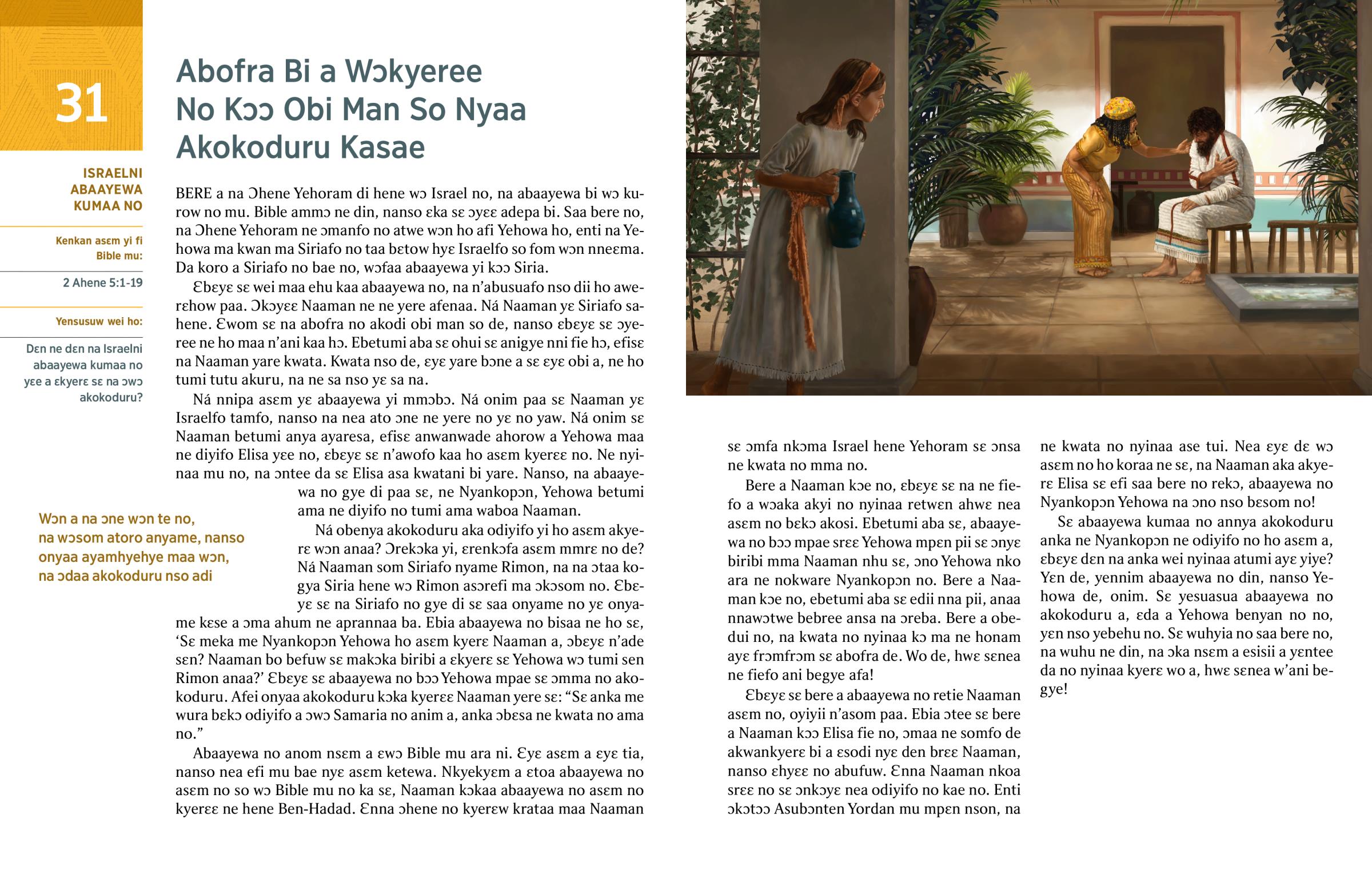 Ná nnipa asɛm yɛ abaayewa yi mmɔbɔ. Ná onim paa sɛ Naaman yɛ Israelfo tamfo, nanso na nea ato ɔne ne yere no yɛ no yaw. Ná onim sɛ Naaman betumi anya ayaresa, efisɛ anwanwade ahorow a Yehowa maa ne diyifo Elisa yɛe no, ɛbɛyɛ sɛ n’awofo kaa ho asɛm kyerɛɛ no. Ne nyinaa mu no, Nanso na ɔntee da sɛ Elisa asa kwatani bi yare. Nanso, na abaayewa no gye di paa sɛ, ne Nyankopɔn, Yehowa betumi ama ne diyifo no tumi ama waboa Naaman.