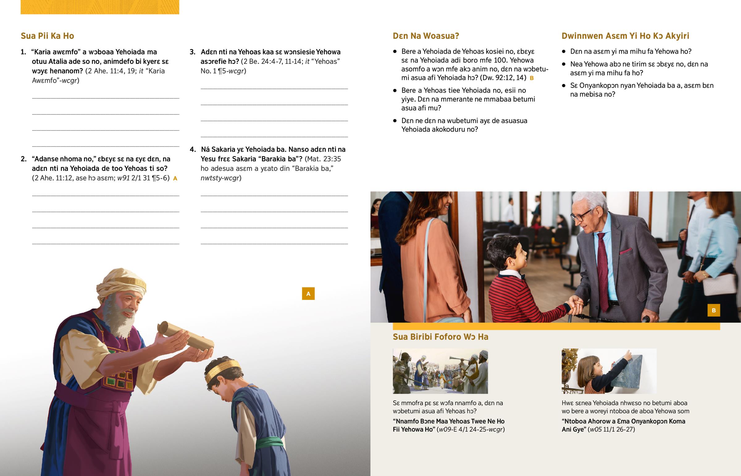 4. Ná Sakaria yɛ Yehoiada ba. Nanso adɛn nti na Yesu frɛɛ Sakaria “Barakia ba”? (Mat. 23:35 ho adesua asɛm a yɛato din “Barakia ba,” nwtsty-wcgr)