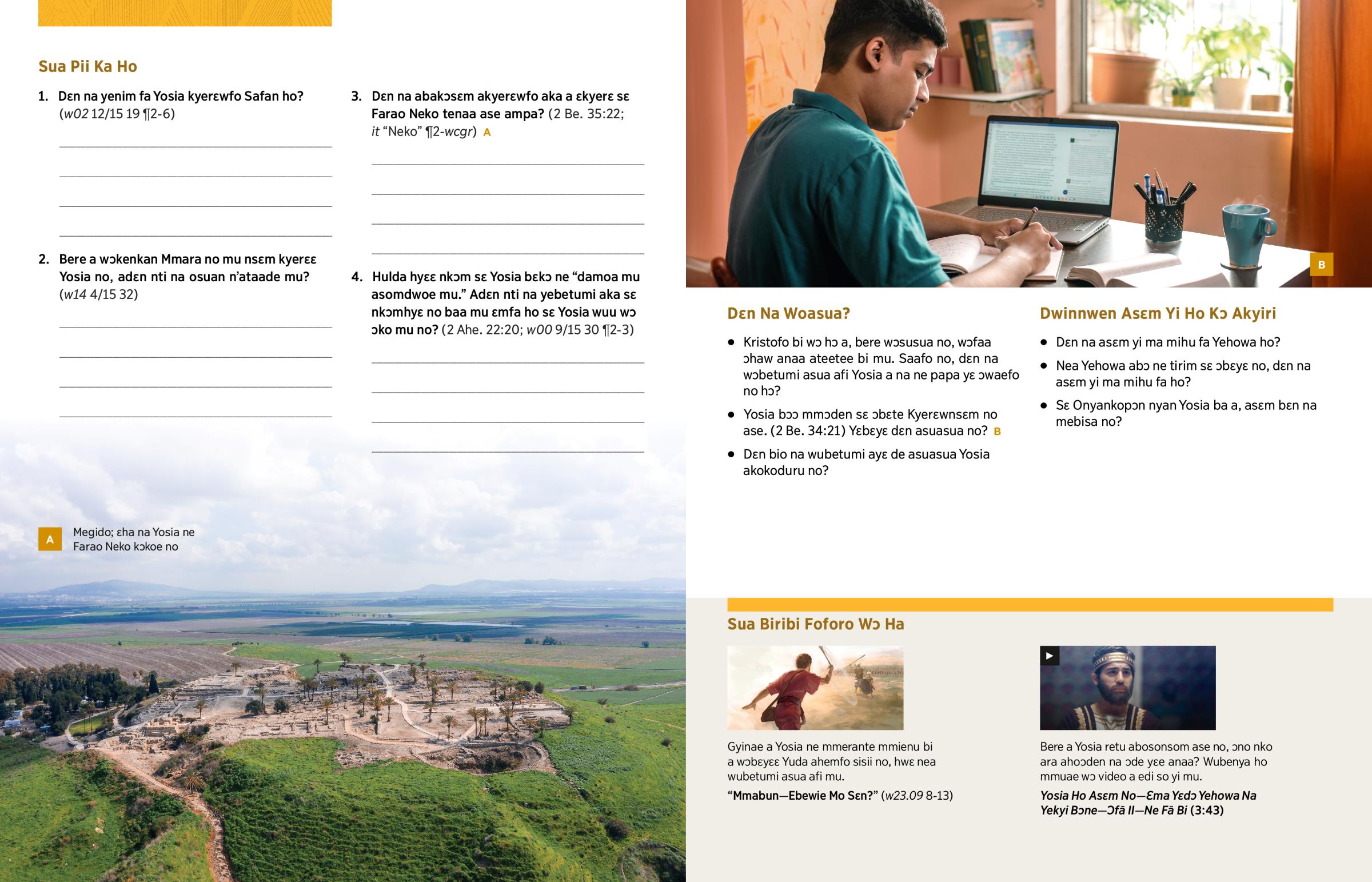 Yosia bɔɔ mmɔden sɛ ɔbɛte Kyerɛwnsɛm no ase. (2 Be. 34:21) Yɛbɛyɛ dɛn asuasua no? B