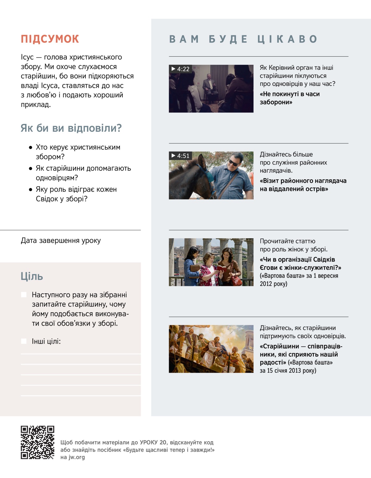 Прочитайте статтю про роль жінок у зборі.