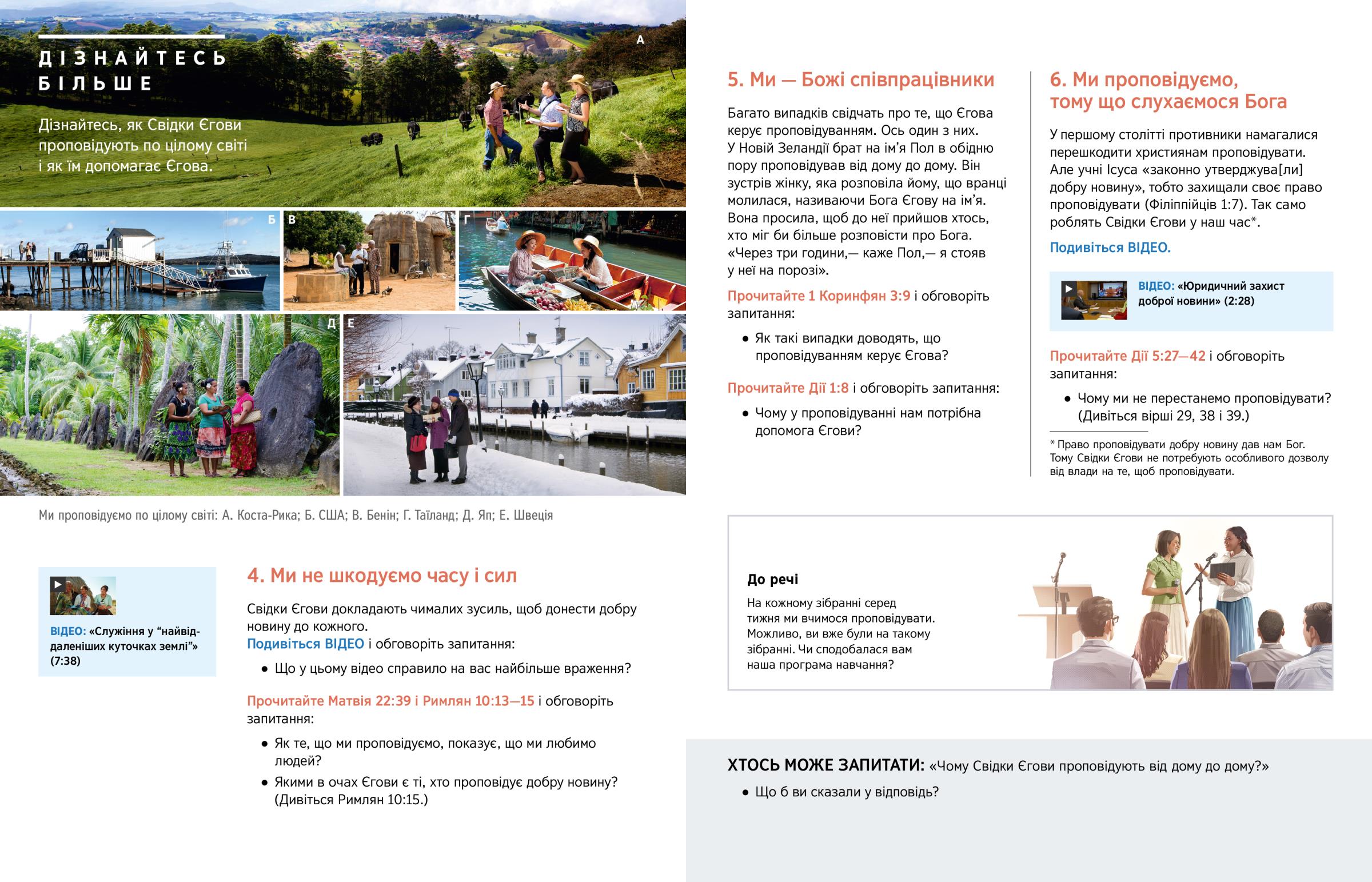 Ми проповідуємо по цілому світі: А. Коста-Рика; Б. США; В. Бенін; Г. Таїланд; Д. Яп; Е. Швеція