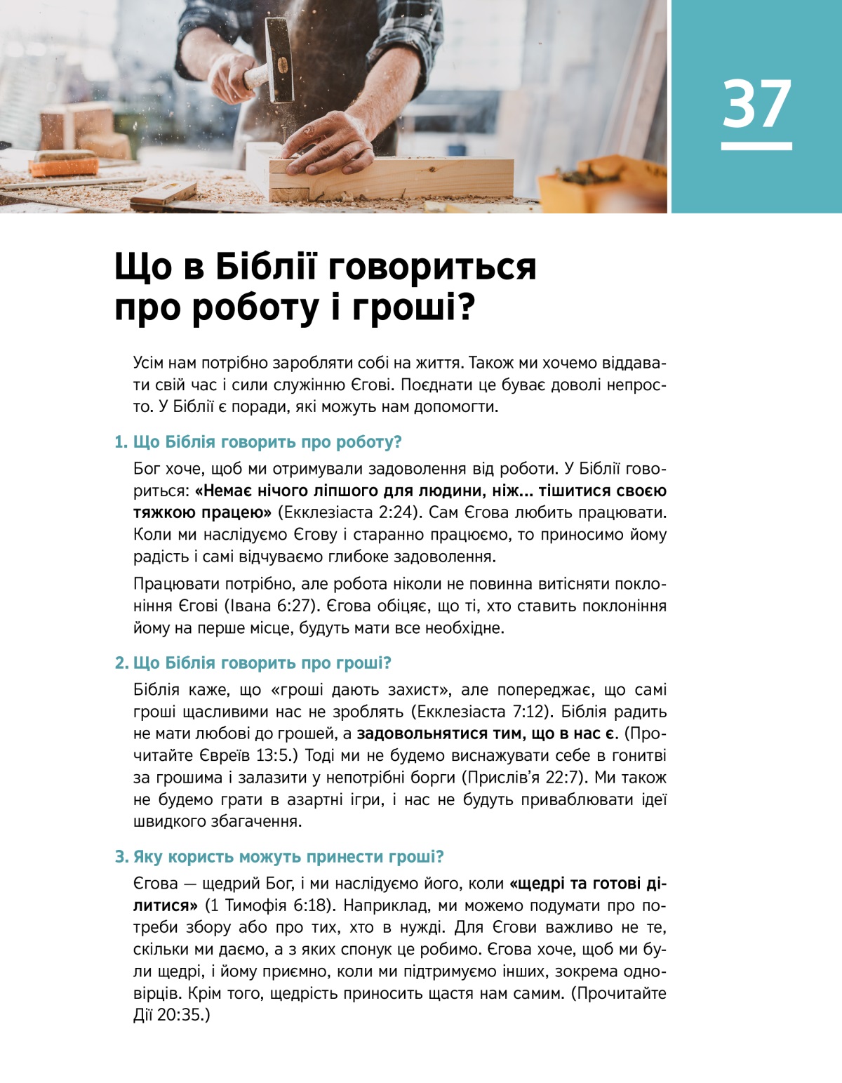 Бог хоче, щоб ми отримували задоволення від роботи. У Біблії говориться: «Немає нічого ліпшого для людини, ніж... тішитися своєю тяжкою працею» (Екклезіаста 2:24). Сам Єгова любить працювати. Коли ми наслідуємо Єгову і старанно працюємо, то приносимо йому радість і самі відчуваємо глибоке задоволення.