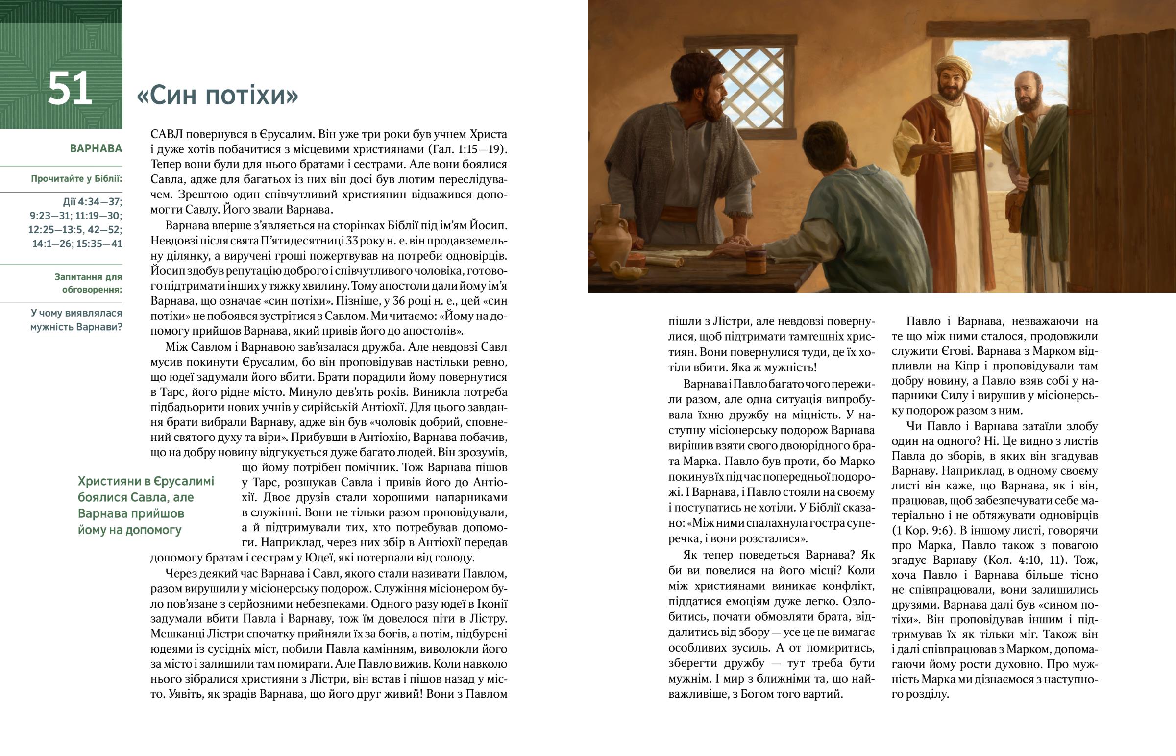 Як тепер поведеться Варнава? Як би ви повелися на його місці? Коли між християнами виникає конфлікт, піддатися емоціям дуже легко. Озлобитись, почати обмовляти брата, віддалитись від збору — усе це не вимагає особливих зусиль. А от помиритись, зберегти дружбу — тут треба бути мужнім. І мир з ближніми та, що найважливіше, з Богом того вартий.