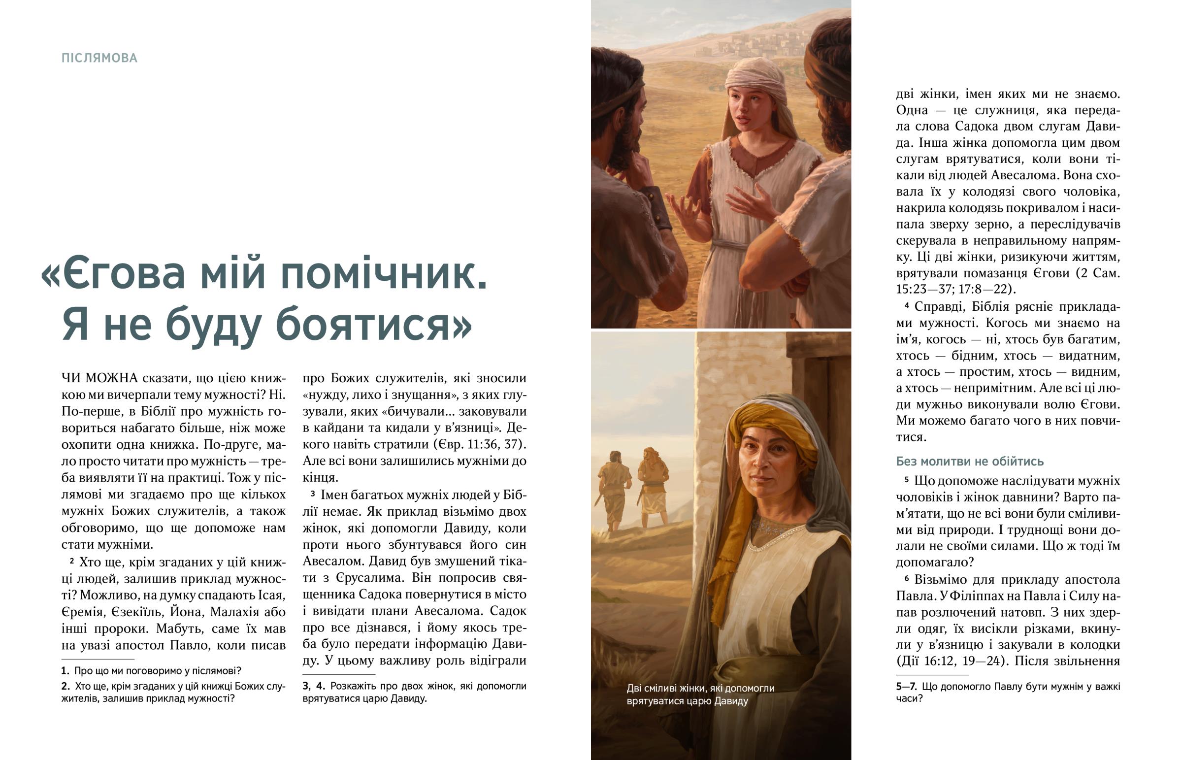 2 Хто ще, крім згаданих у цій книжці людей, залишив приклад мужності? Можливо, на думку спадають Ісая, Єремія, Єзекіїль, Йона, Малахія або інші пророки. Мабуть, саме їх мав на увазі апостол Павло, коли писав про Божих служителів, які зносили «нужду, лихо і знущання», з яких глузували, яких «бичували... заковували в кайдани та кидали у в’язниці». Декого навіть стратили (Євр. 11:36, 37). Але всі вони залишились мужніми до кінця.