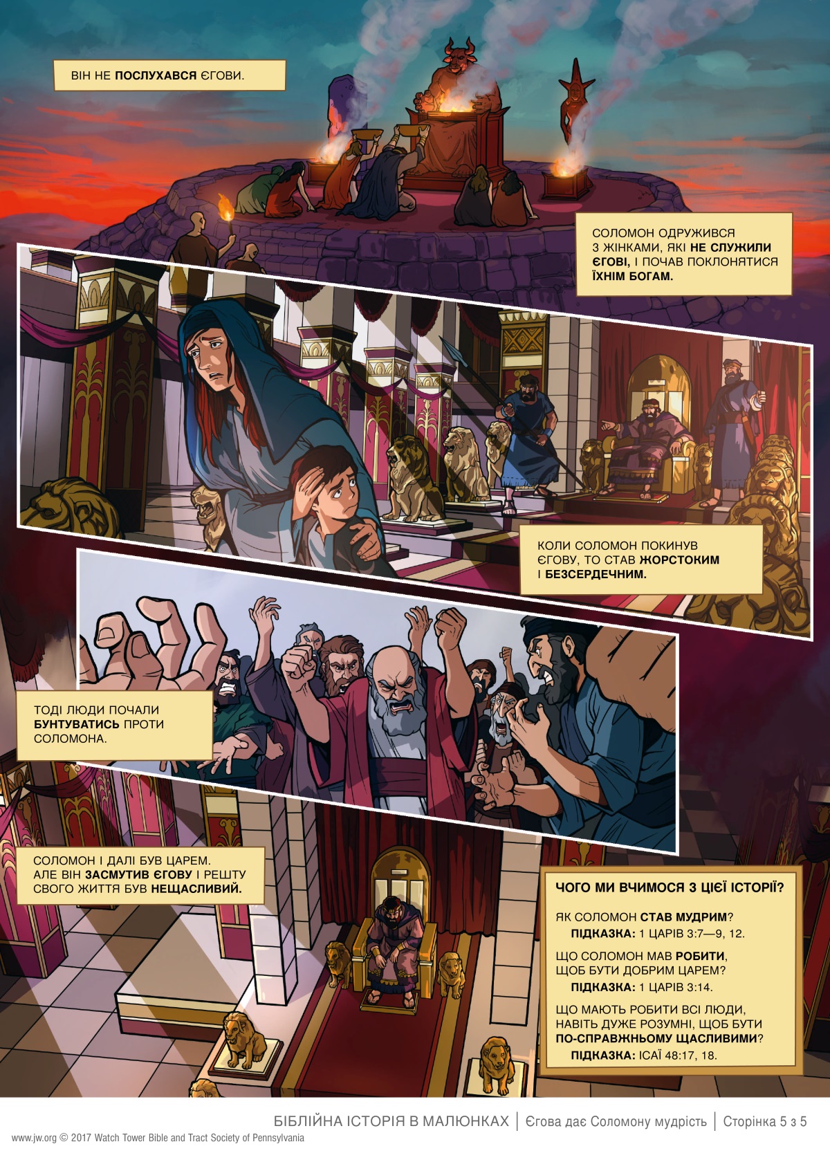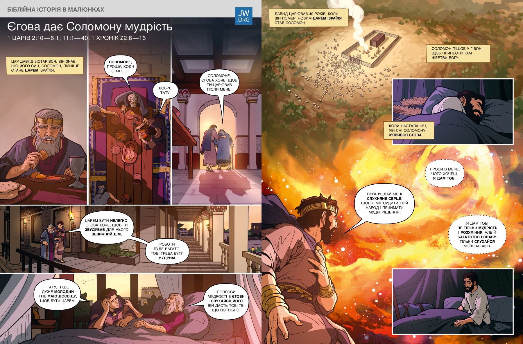 З цієї біблійної розповіді ти дізнаєшся, як цар Соломон став мудрим, а пізніше втратив мудрість і наробив багато помилок.