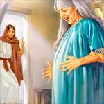 Зрештою Марія прибуває в дім Захарія. Увійшовши, вона вітає свою родичку Єлизавету. В ту ж мить Єлизавета сповнюється святого духу і каже: «Благословенна ти поміж жінками і благословенний плід твоєї утроби! До мене прийшла мати мого Господа! За що мені така честь? Бо, тільки-но я почула твоє вітання, дитина в моїй утробі заворушилася з радості» (Луки 1:42—44).